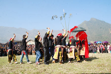 Tiếp đến là màn tái hiện lễ rước dâu của người Dao, hát giao duyên nam nữ bằng những bài ca cổ, chữ nghĩa sâu sắc, giai điệu tình tứ, bộc lộ đời sống văn hóa tinh thần phong phú, bản sắc dân tộc độc đáo của người Dao đỏ ở vùng đất Tả Phìn- Sa Pa.