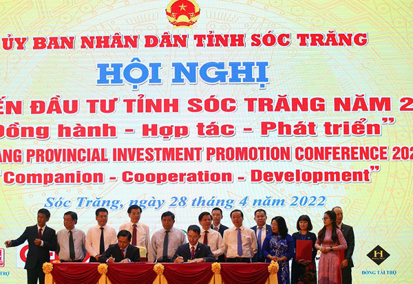 Tại Hội nghị, trước sự chứng kiến của Thủ tướng Chính phủ và lãnh đạo các bộ, ngành Trung ương, UBND tỉnh Sóc Trăng trao 4 quyết định chủ trương đầu tư; ký kết 19 biên bản ghi nhớ nghiên cứu, khảo sát đầu tư, với tổng vốn đầu tư các dự án hơn 200 nghìn tỷ đồng. Tỉnh Sóc Trăng cũng đón nhận sự đóng góp của các doanh nghiệp trong và ngoài tỉnh cho hoạt động an sinh xã hội trên địa bàn, với tổng số tiền trên 50 tỷ đồng. |