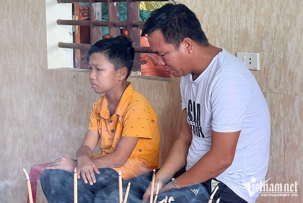 Cháu Nguyễn Quốc Anh mắt đỏ hoe, tay liên tục chùi nước mắt, khóc nức nở kể: “Bố con bị tai nạn nên phải đi tiêm hàng ngày. Hôm qua, trước lúc bố mẹ đi tới bệnh viện còn dặn dò mấy anh em, trời mưa to 3 anh em ở nhà không ra ngoài đường....”.