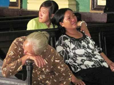 Phan Minh Mẫn (trái) cùng người thân (bà nội, mẹ, em gái) trong giây phút Mẫn bị Tòa sơ thẩm tuyên án tử hình (Ảnh: PLVN) |