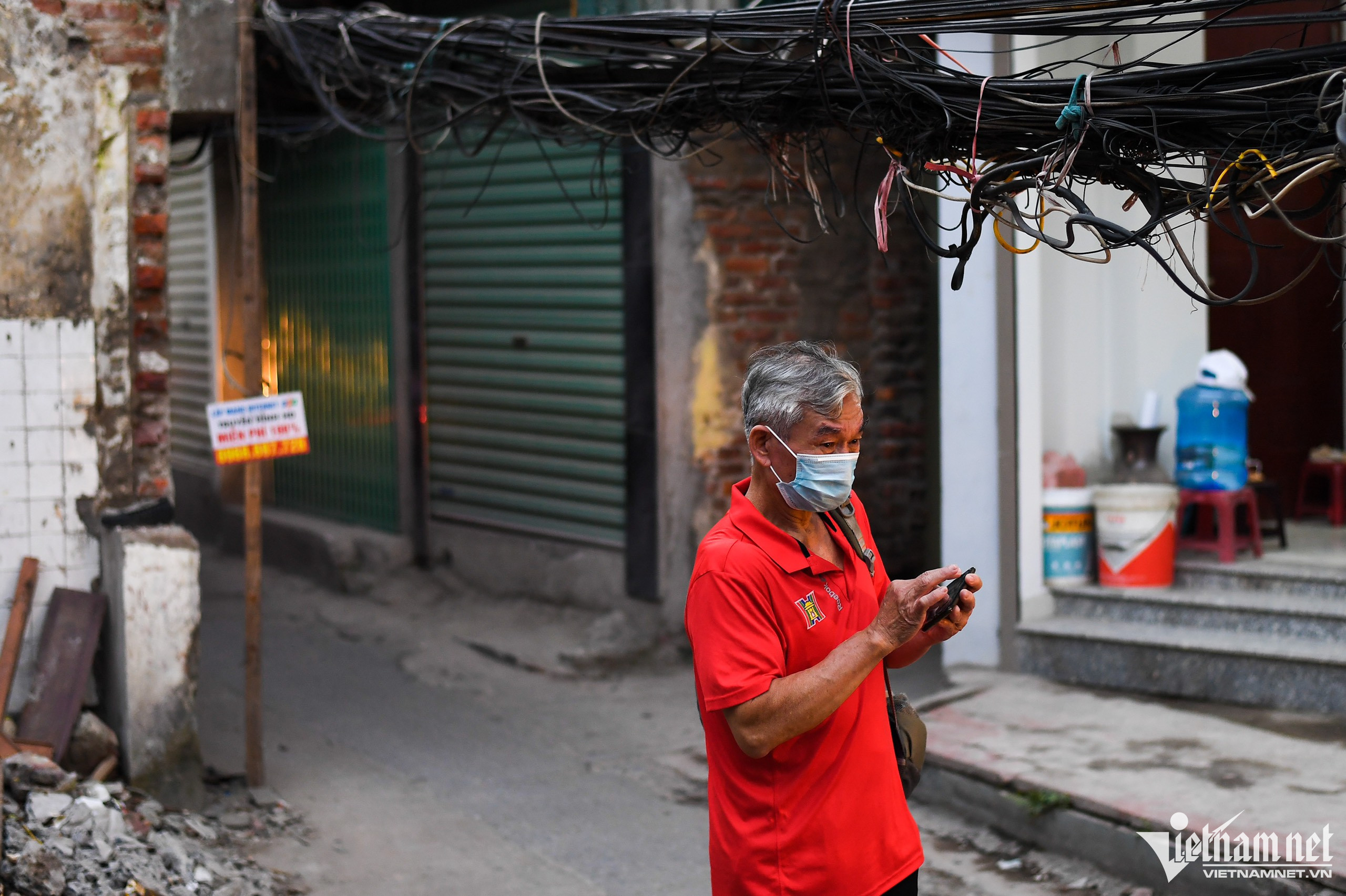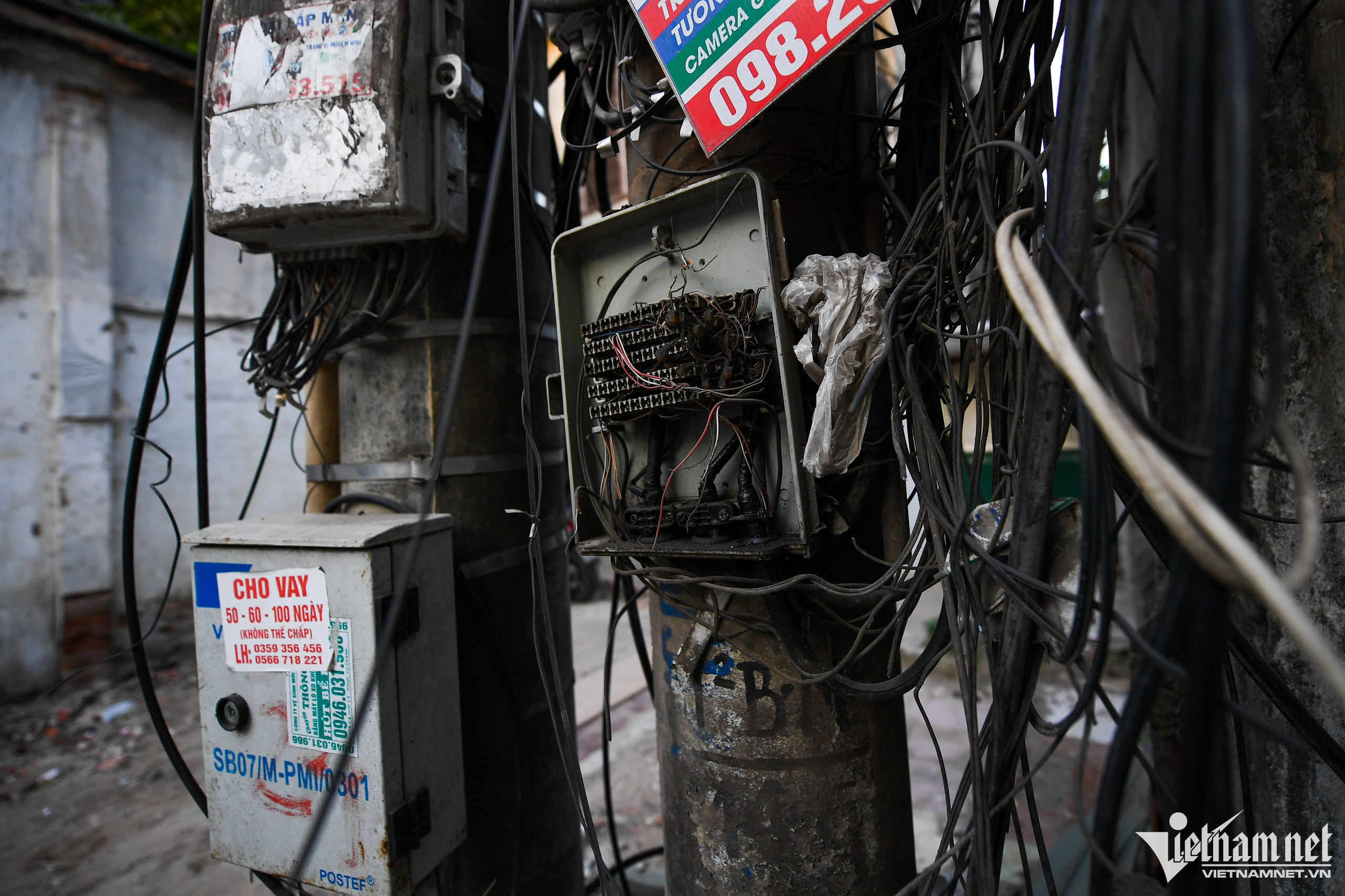 Dây chi chít, đan chéo vào nhau như “mạng nhện”, trở thành nơi treo biển quảng cáo rao vặt.