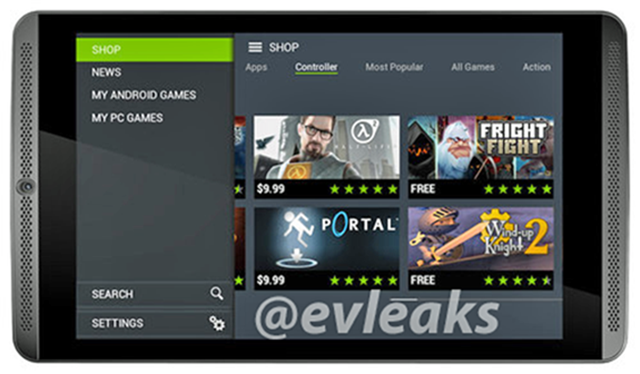 Dựa vào ảnh thì chúng ta sẽ dễ dàng nhận ra rằng nVIDIA SHIELD Tablet có mặt trước và kiểu dáng không khác gì so với một chiếc tablet khác của nVIDIA là Tegra Note. Trong khi Tegra Note hướng đến đối tượng người dùng phổ thông, thì SHIELD Tablet nhắm đến những ai thích chơi game, có nhu cầu giải trí cao trên một chiếc máy tính bảng - bằng chứng rõ nét đó là ứng dụng cửa hàng với một số game xuất hiện trên SHIELD Tablet.