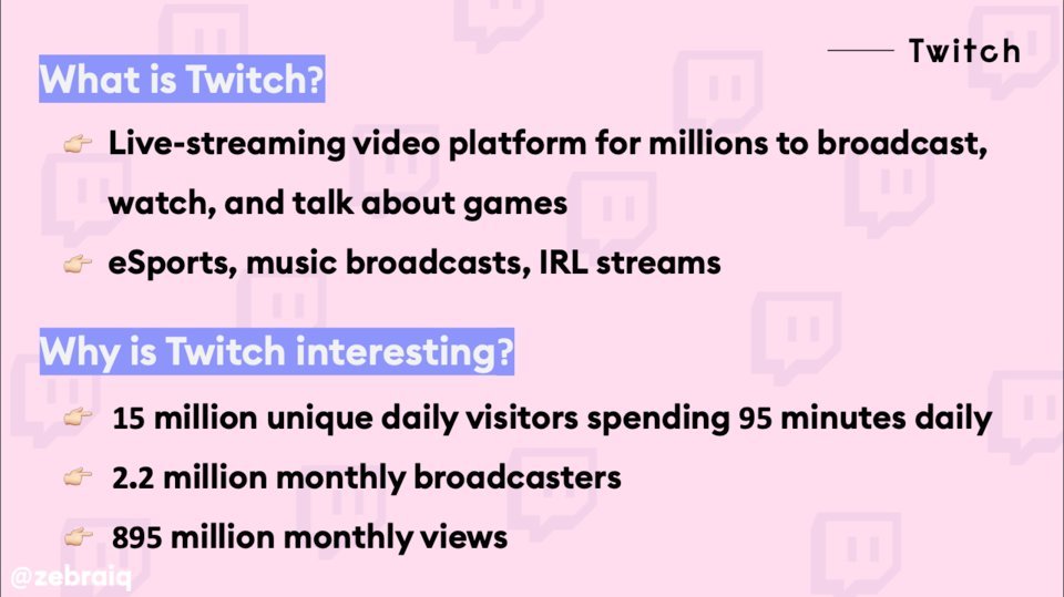 Vì sao Twitch hấp dẫn? Nền tảng này có 15 triệu lượt khách không trùng lặp ghé thăm hàng ngày và dành 95 phút/ngày; 2,2 triệu người phát sóng hàng tháng; 895 triệu lượt view mỗi tháng. |