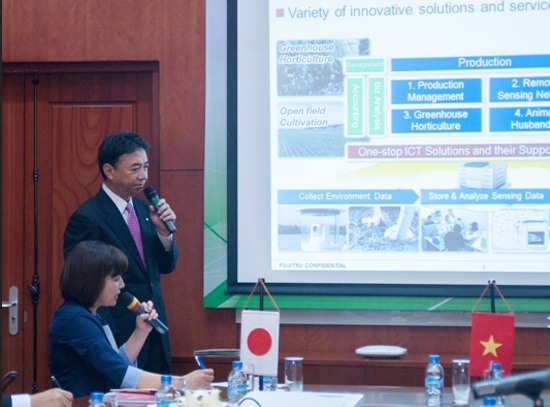 Ngày 28/10/2014, tại Hà Nội, Tập đoàn Fujitsu của Nhật và FPT đã công bố thỏa thuận hợp tác đưa CNTT vào phát triển nông nghiệp thông minh tại Việt Nam. Theo đó, trong 2 năm 2015 - 2016, Fujitsu và FPT sẽ ứng dụng thử nghiệm Akisai Cloud, dịch vụ hỗ trợ toàn diện giải pháp quản lý nông nghiệp trên nền công nghệ điện toán đám mây, của Fujitsu tại Việt Nam. Cụ thể, Fujitsu sẽ cung cấp giải pháp công nghệ, các thiết bị đi kèm và chuyên gia tư vấn. Về phía FPT, với thế mạnh là công ty CNTT hàng đầu Việt Nam, FPT sẽ tiếp nhận việc chuyển giao công nghệ và ứng dụng công nghệ của Fujitsu vào lĩnh vực nông nghiệp tại Việt Nam.
