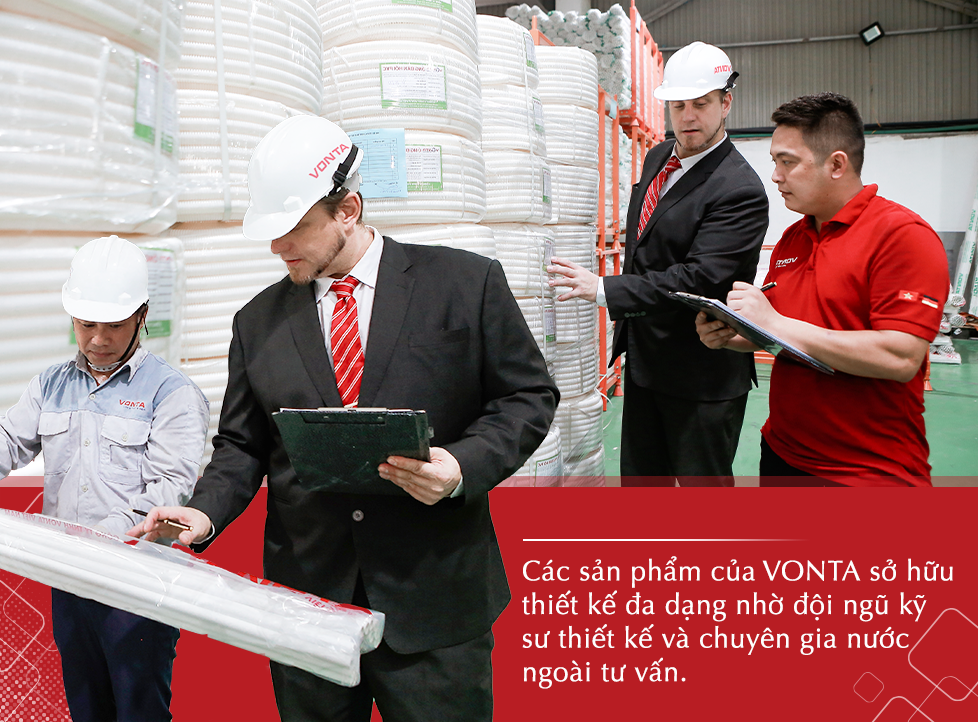 Hạt nhựa nguyên liệu để tạo ra các sản phẩm của VONTA được nhập khẩu trực tiếp từ châu Âu, trên dây truyền sản xuất của CHLB Đức. Các sản phẩm của VONTA sở hữu thiết kế đa dạng nhờ đội ngũ kỹ sư thiết kế và chuyên gia nước ngoài tư vấn.