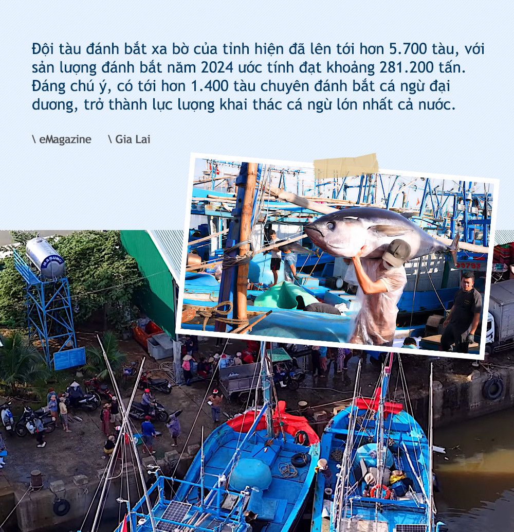 Quote 3: Đội tàu đánh bắt xa bờ của tỉnh hiện đã lên tới hơn 5.700 tàu, với sản lượng đánh bắt năm 2024 ước tính đạt khoảng 281.200 tấn. Đáng chú ý, có tới hơn 1.400 tàu chuyên đánh bắt cá ngừ đại dương, trở thành lực lượng khai thác cá ngừ lớn nhất cả nước.
