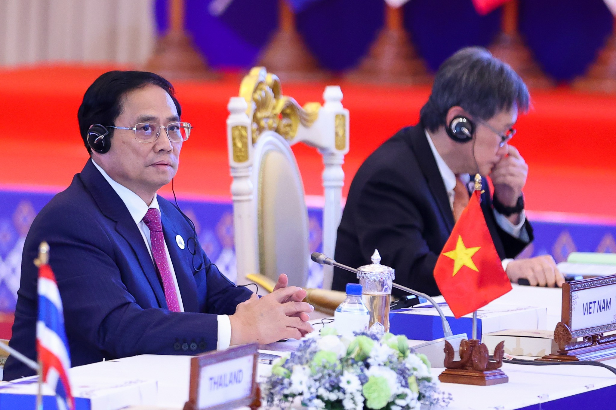 Trao đổi về tình hình khu vực và quốc tế tại các hội nghị, Thủ tướng Phạm Minh Chính cùng lãnh đạo các đối tác khẳng định tầm quan trọng của việc duy trì và bảo đảm môi trường hòa bình, an ninh và ổn định ở khu vực, trong đó có ở Biển Đông, là quan tâm và lợi ích chung của các nước. Theo đó, ASEAN đề nghị các đối tác ủng hộ lập trường nguyên tắc của ASEAN về Biển Đông cũng như nỗ lực xây dựng Bộ Quy tắc Ứng xử ở Biển Đông (COC) hiệu quả, thực chất, phù hợp với luật pháp quốc tế và Công ước LHQ về Luật Biển (UNCLOS) 1982, hướng tới xây dựng Biển Đông thành vùng biển hòa bình, ổn định, hợp tác và phát triển bền vững. Các đối tác nhất trí tiếp tục ủng hộ vai trò và nỗ lực của ASEAN trong thúc đẩy đối thoại, hòa giải, hỗ trợ Myanmar tìm giải pháp ổn định tình hình. Chia sẻ quan ngại sâu sắc về các diễn biến gần đây trên Bán đảo Triều Tiên, ASEAN bày tỏ ủng hộ các nỗ lực thúc đẩy hoà bình, ổn định và phi hạt nhân hoá hoàn toàn bán đảo Triều Tiên, khẳng định sẵn sàng đóng vai trò xây dựng, tạo thuận lợi cho đối thoại giữa các bên liên quan tại các cơ chế do ASEAN chủ trì. |