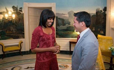 Văn phòng đệ nhất phu nhân Mỹ đã đăng bức ảnh bà Michelle với một mái tóc mới trên trang Twitter của bà vào tối 17/1. Bức ảnh này được chụp tại Nhà Trắng khi bà đang gặp gỡ với một trong 8 công dân là đồng chủ trì lễ nhậm chức của Tổng thống Barack Obama.