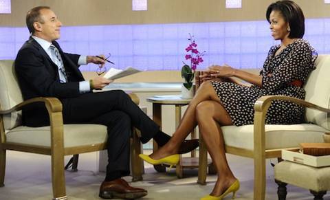 Được biết, trong chương trình “Today Show” của đài truyền hình NBC’s (Mỹ), Đệ nhất phu nhân Michelle Obama đã mặc một chiếc váy liền màu đen chấm bi trắng, tím.