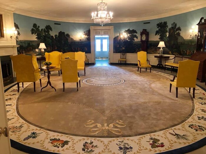 Đệ nhất phu nhân Mỹ đã thiết kế một tấm thảm mới cho Phòng Lễ tân Ngoại giao, với đường viền mang họa tiết 50 bông hoa, đại diện cho 50 tiểu bang nước Mỹ.