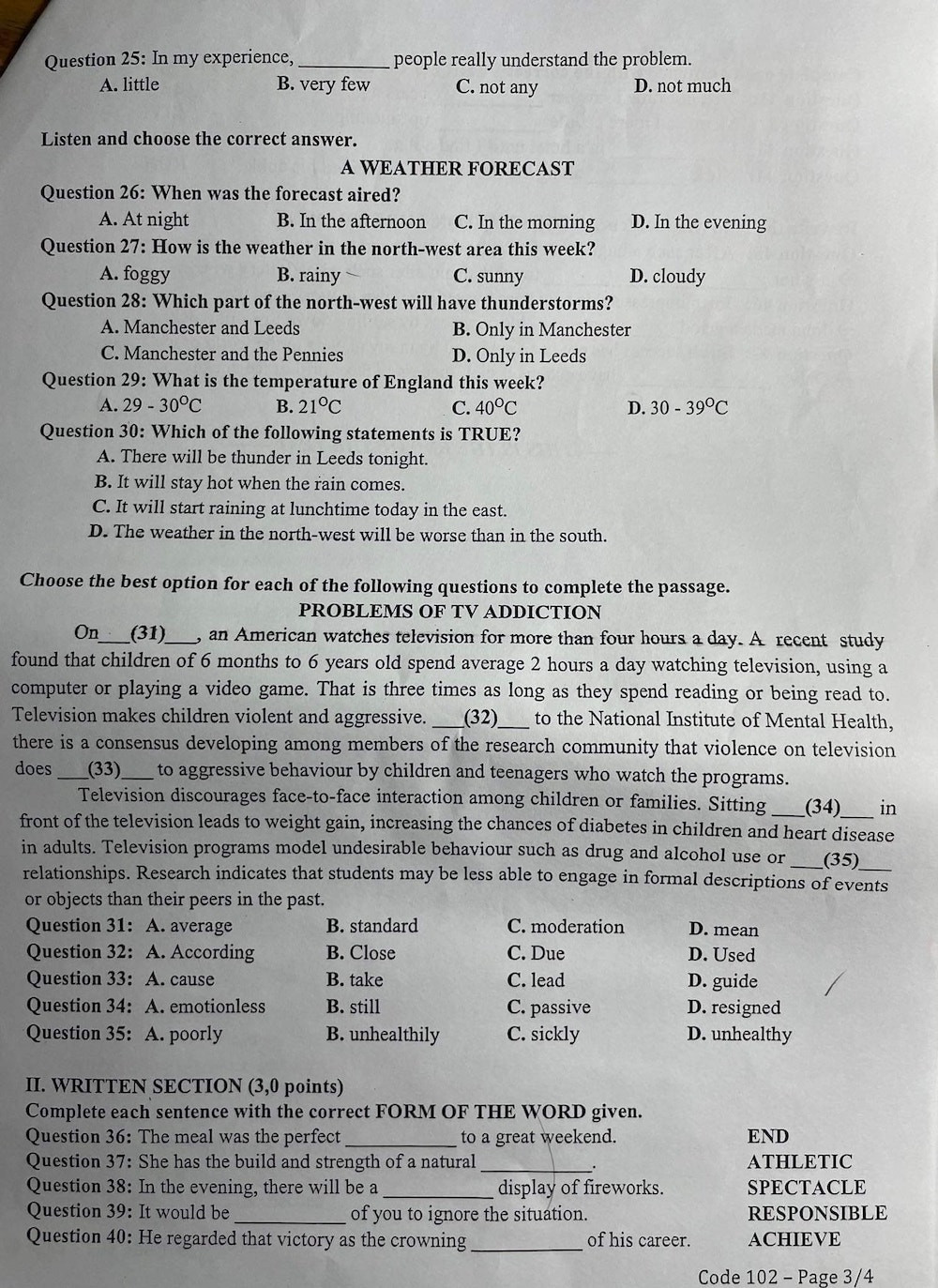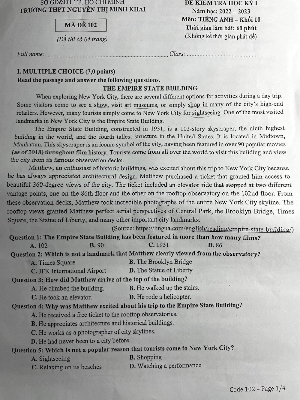 Học sinh lớp 10, Trường THPT Nguyễn Thị Minh Khai, TP.HCM vừa thực hiện bài kiểm tra học kỳ 1 môn Tiếng Anh.