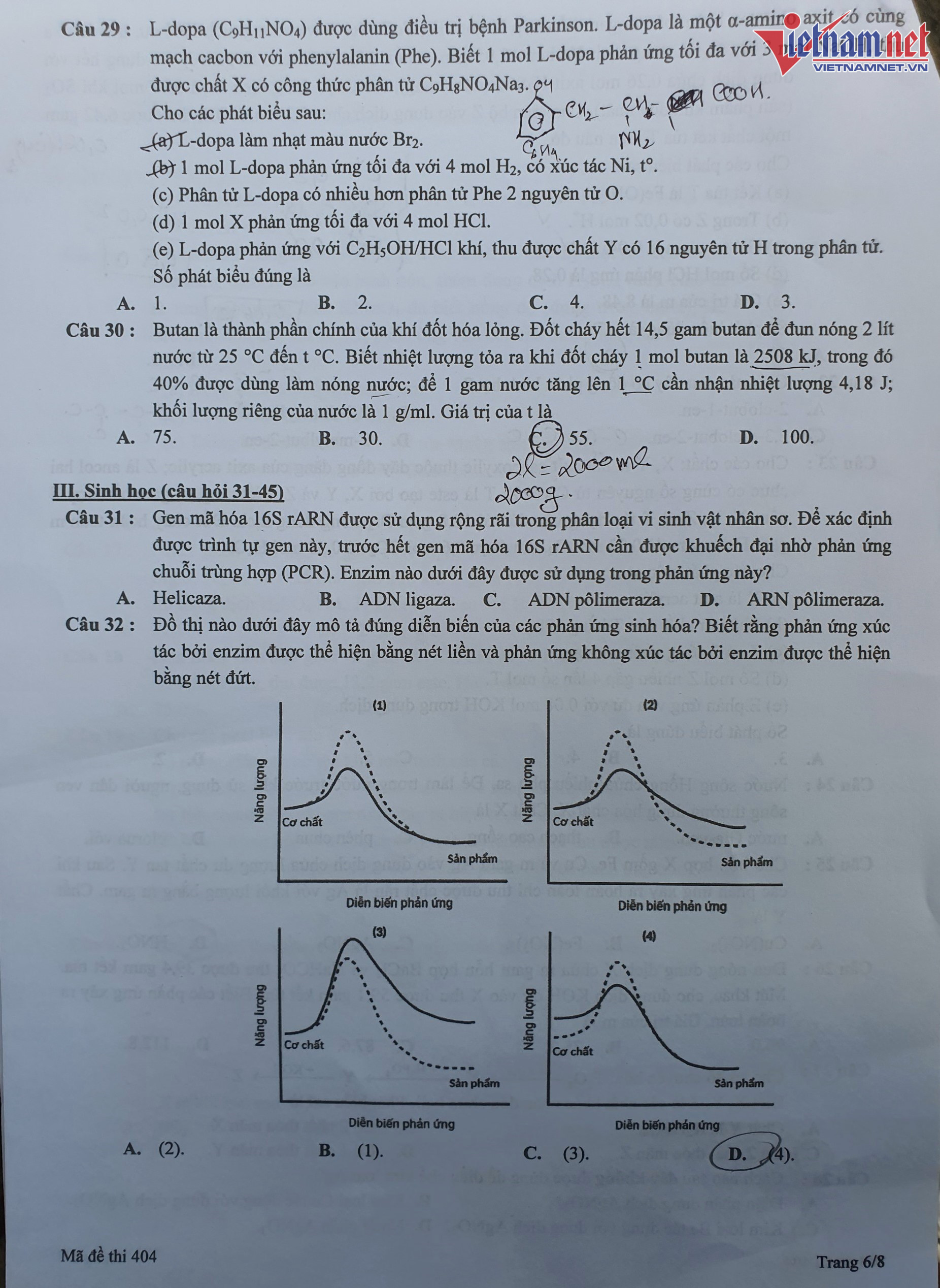 Đề thi đánh giá tư duy Trường ĐH Bách khoa Hà Nội 2022, phần Khoa học tự nhiên: