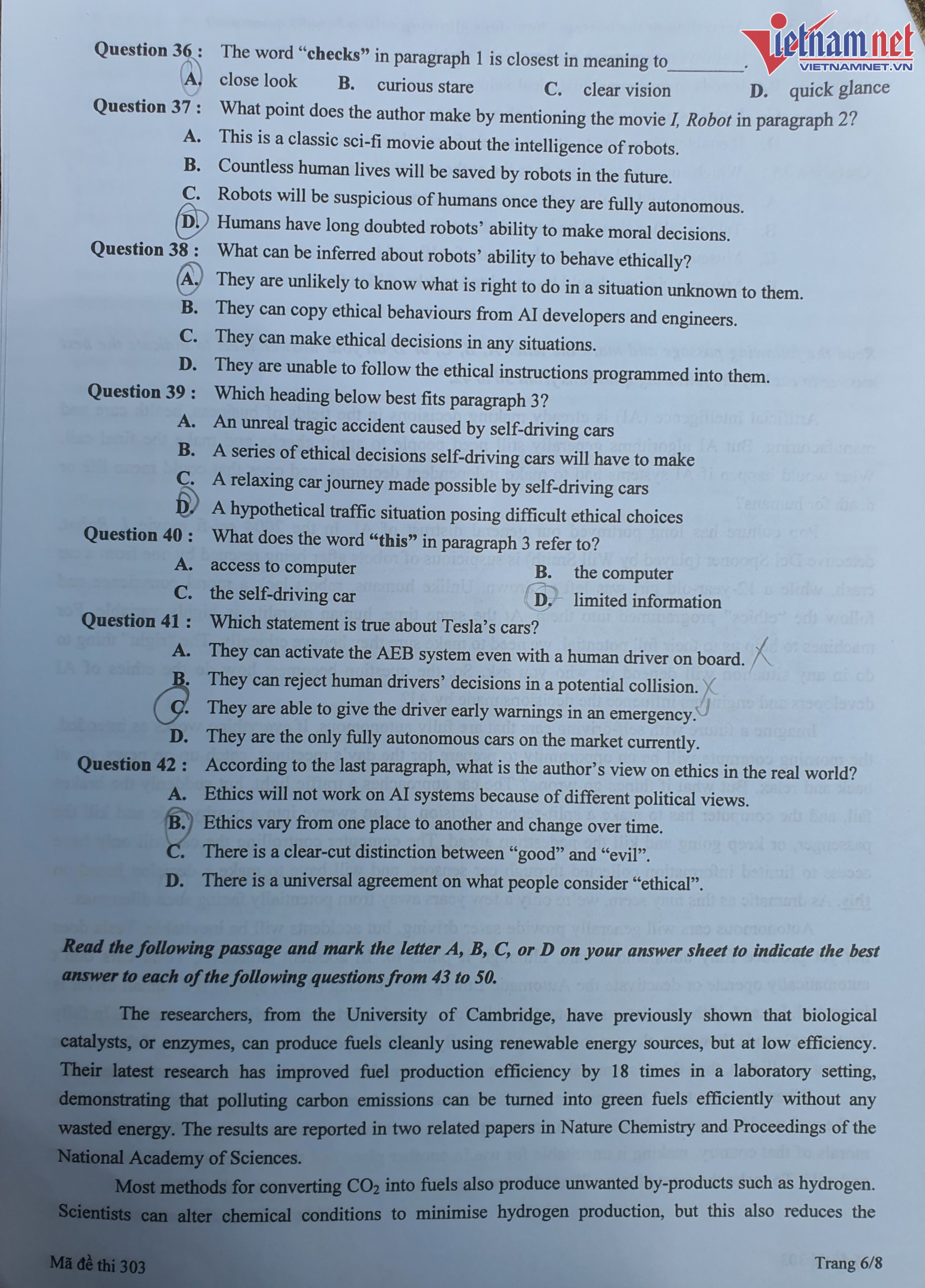 Đề thi đánh giá tư duy Trường ĐH Bách khoa Hà Nội 2022, phần Đọc hiểu: