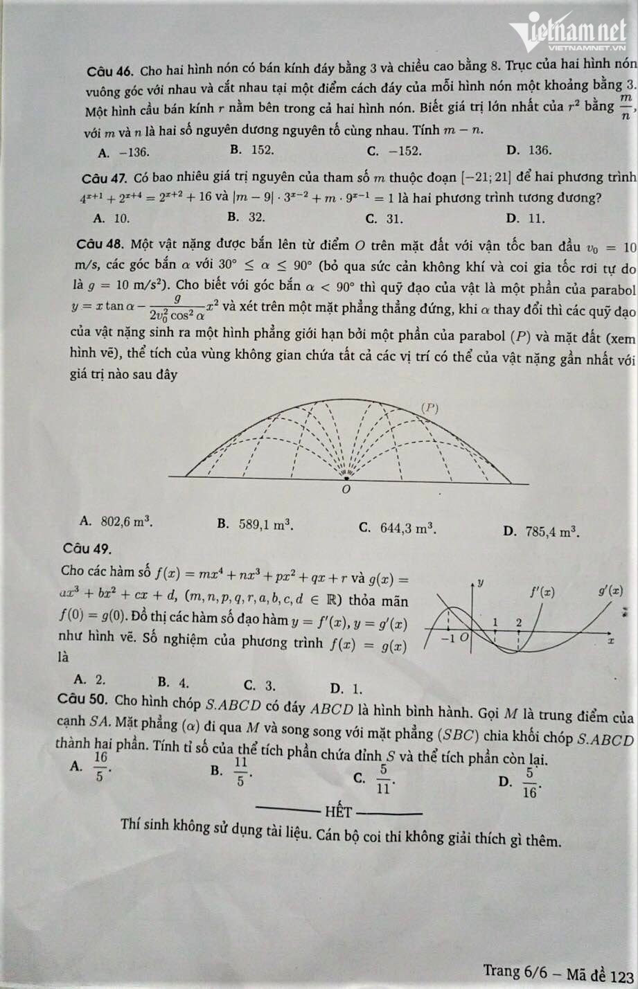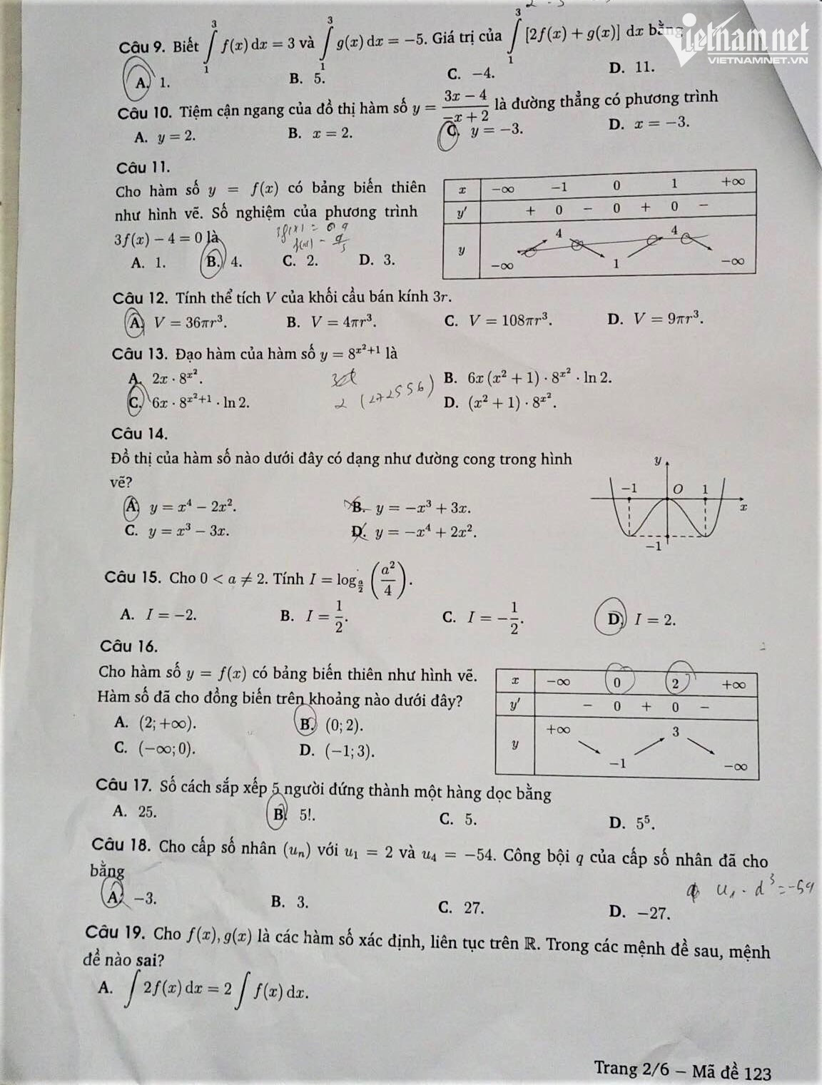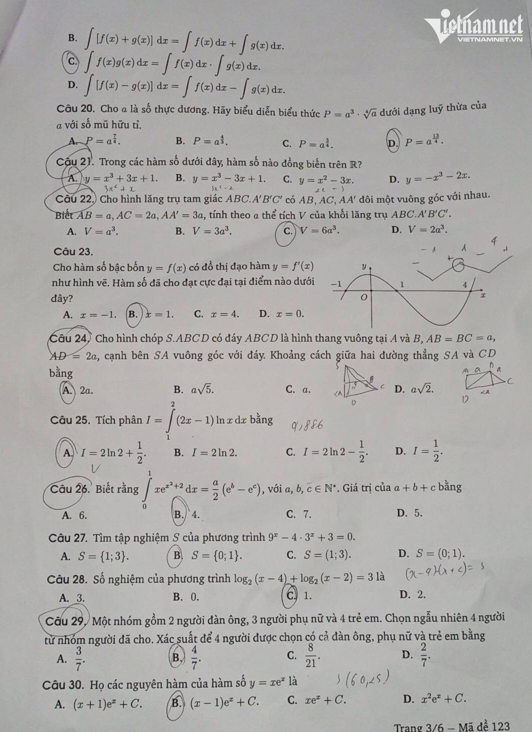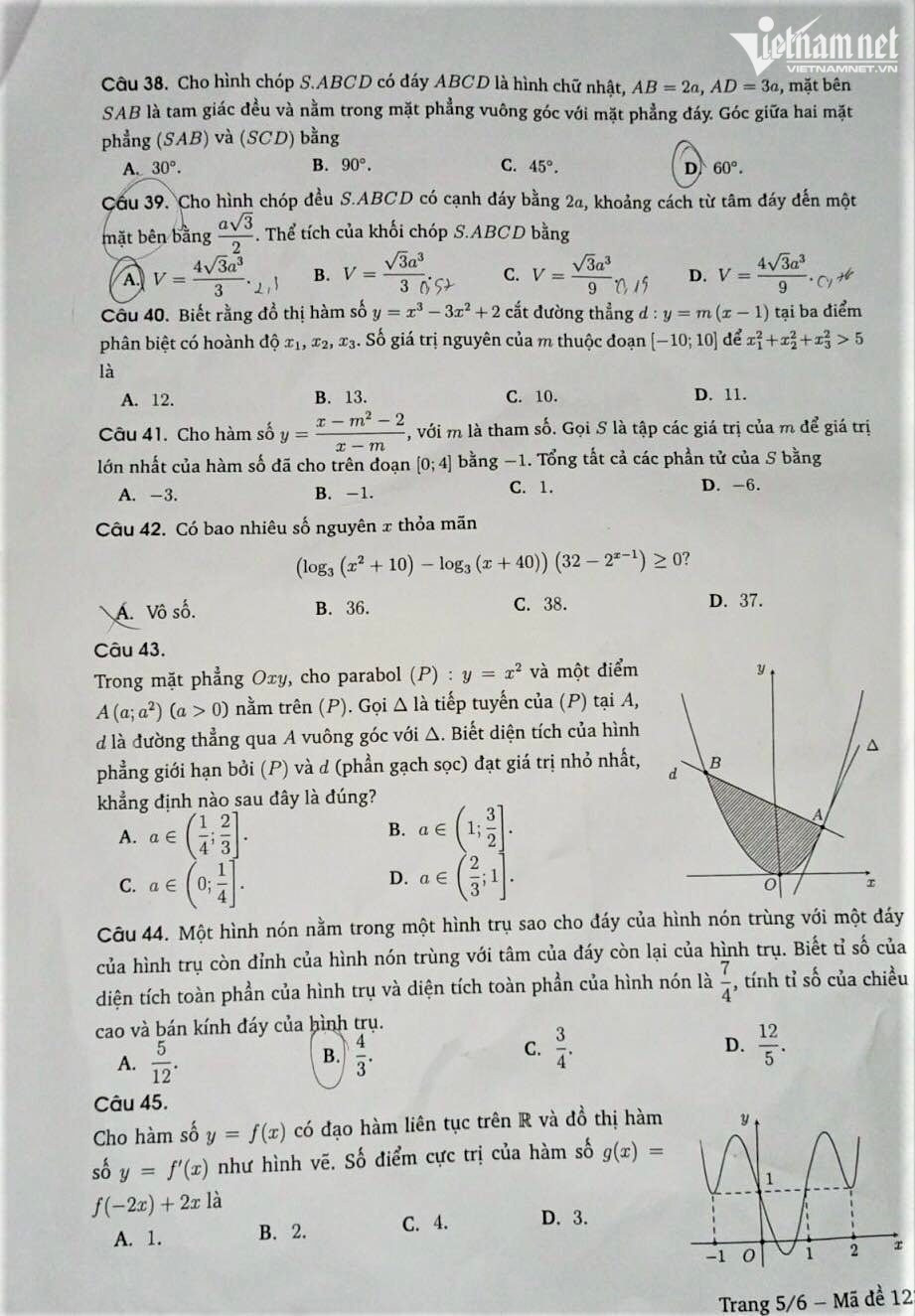 Đáp án của đề thi thử tốt nghiệp THPT môn Toán của Ninh Bình: