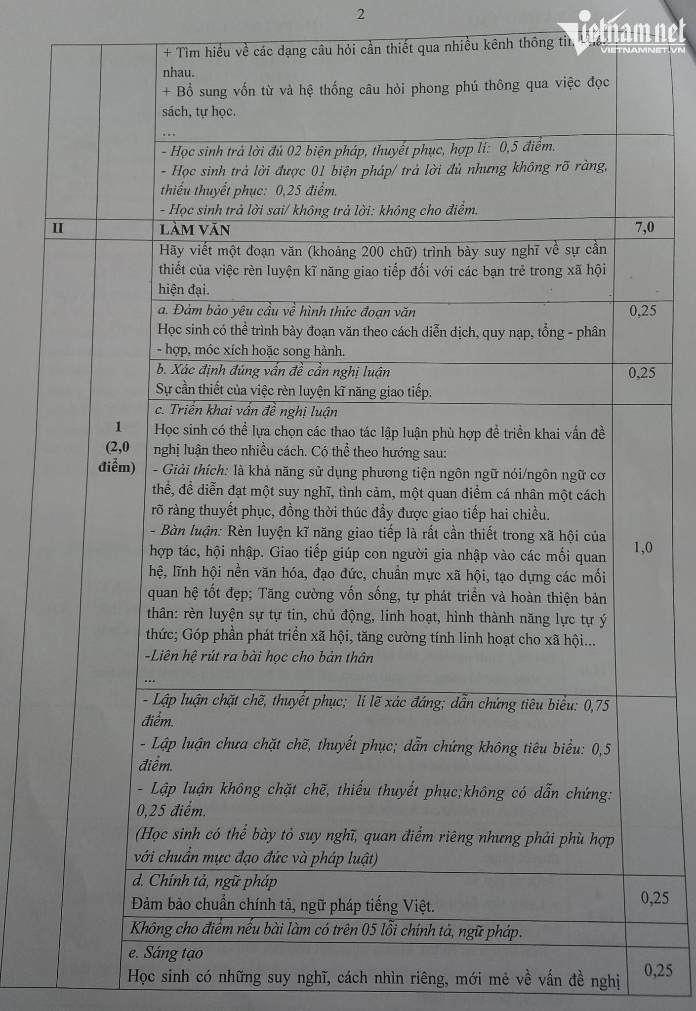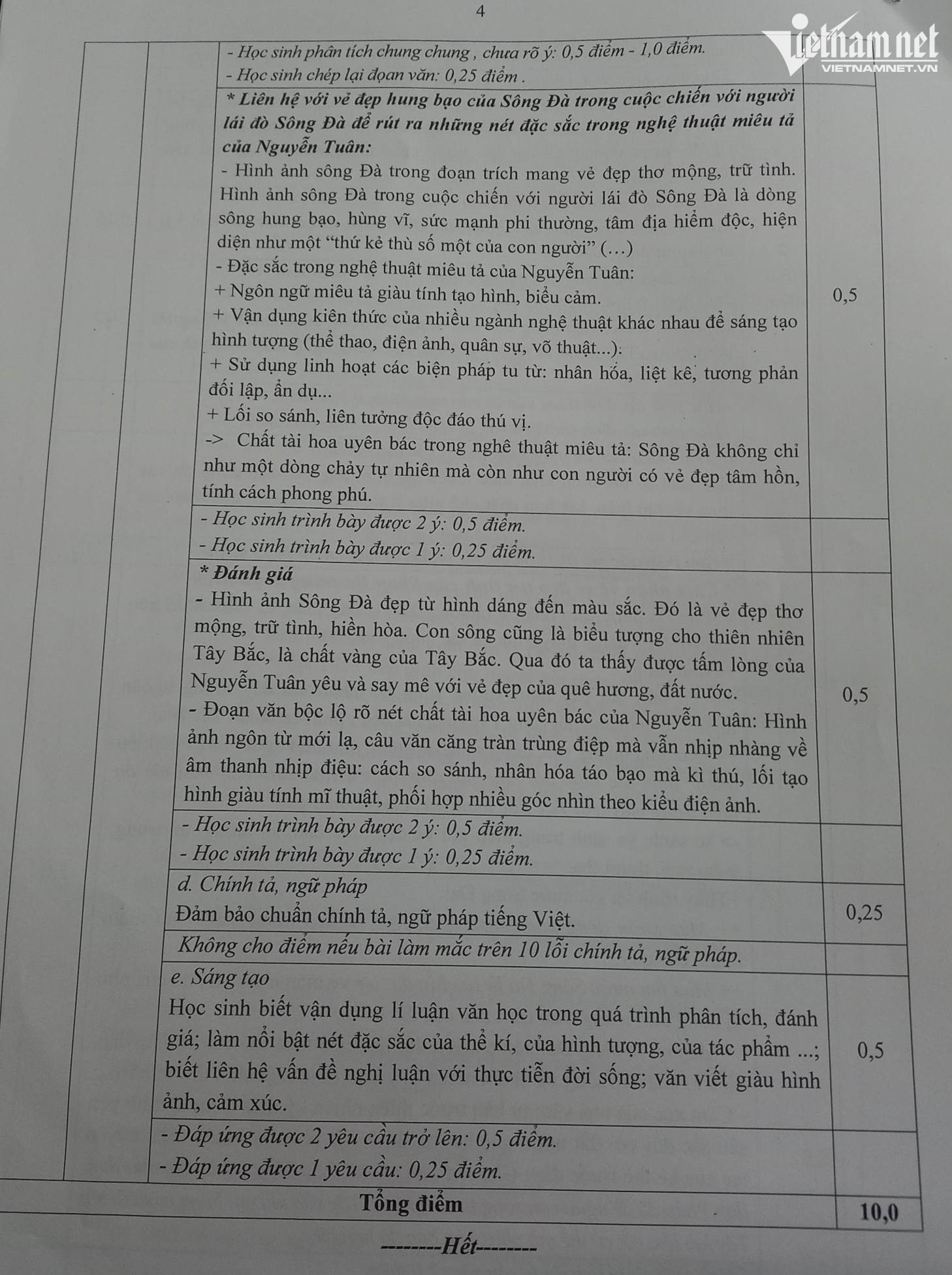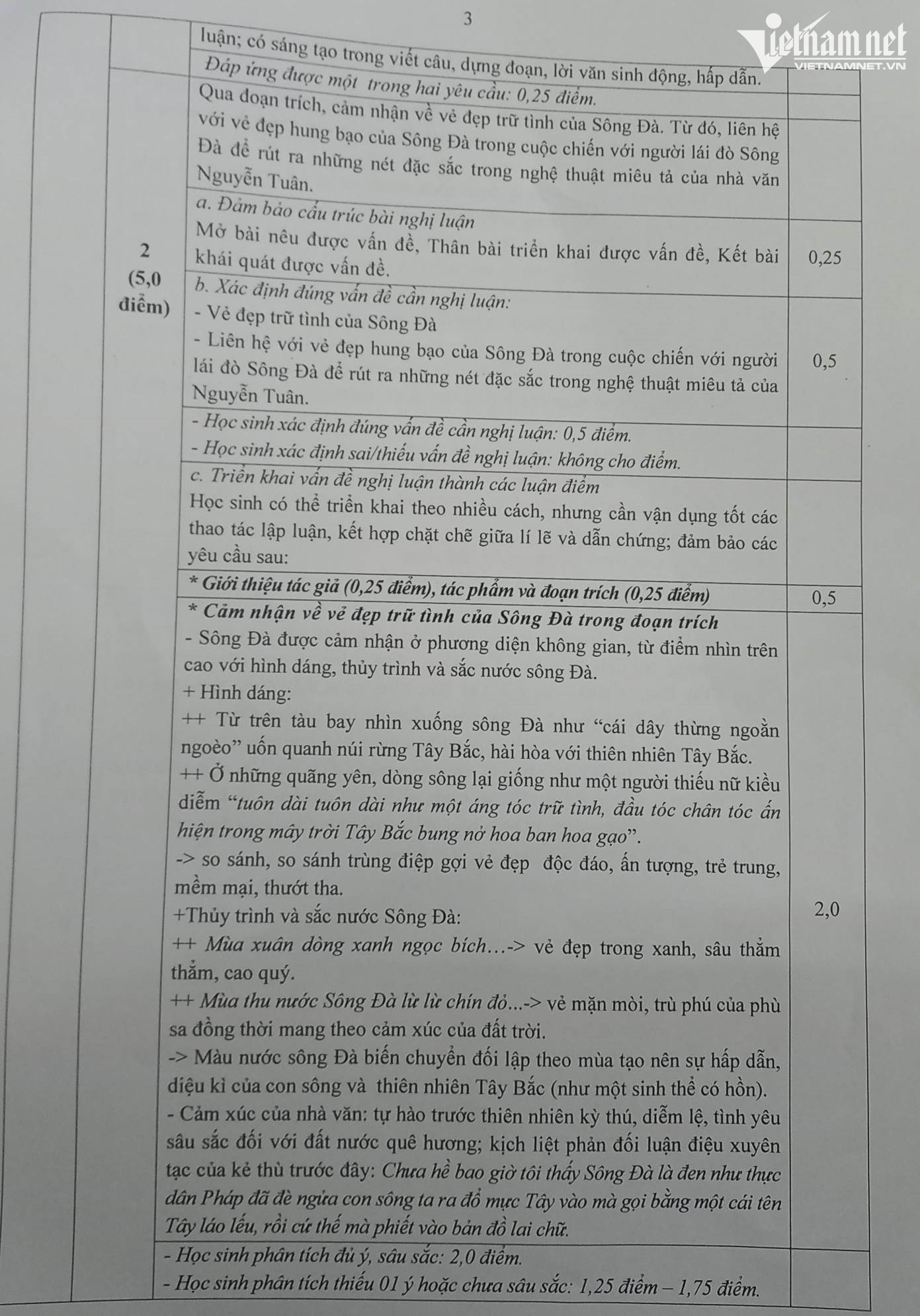 Đáp án của đề thi thử tốt nghiệp THPT môn Ngữ văn của Ninh Bình: