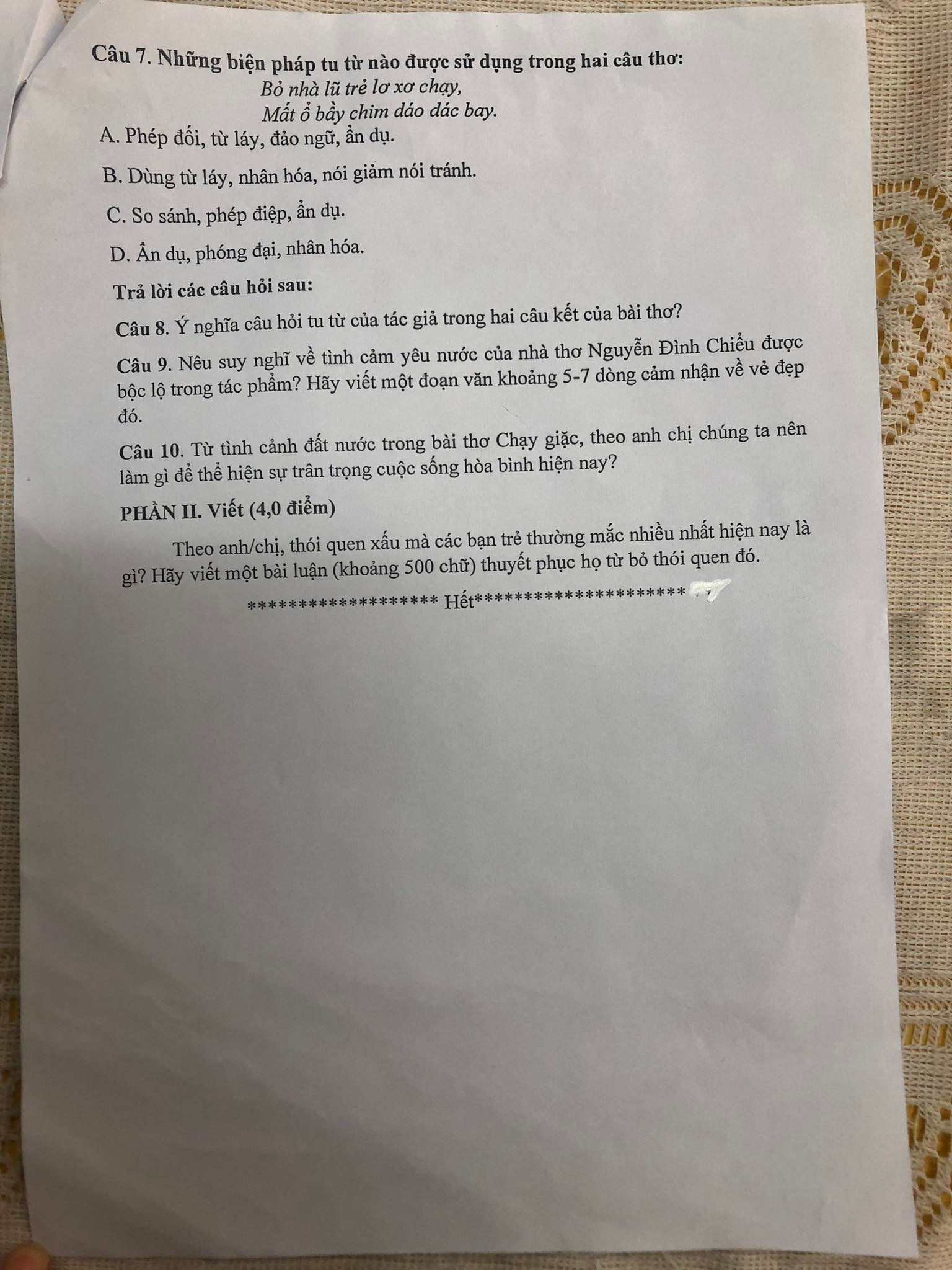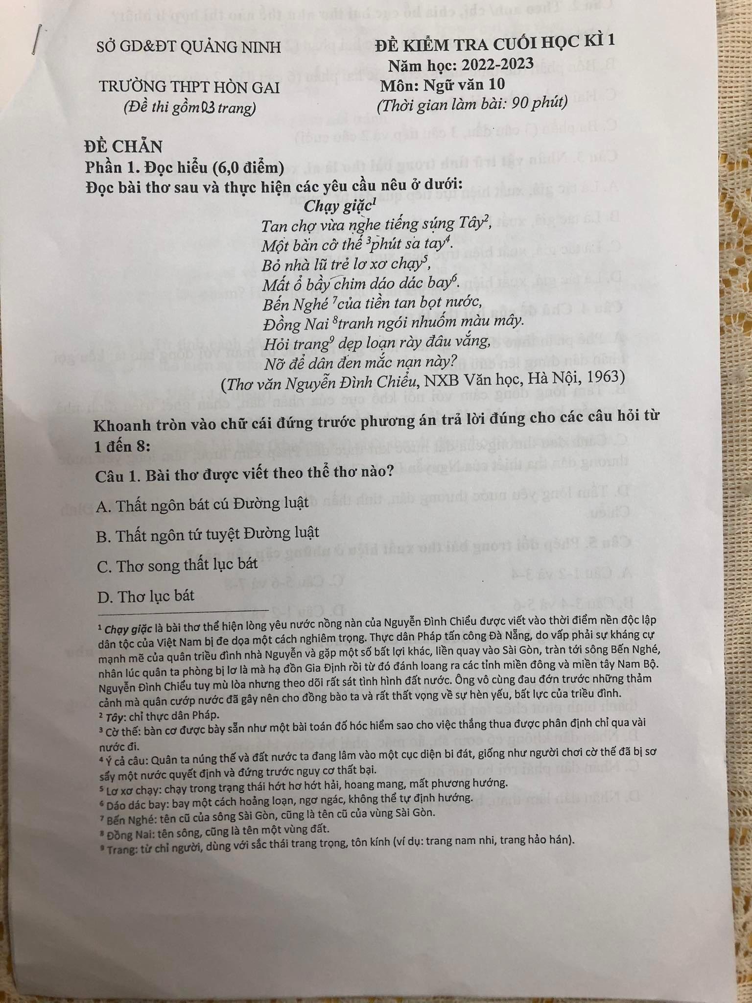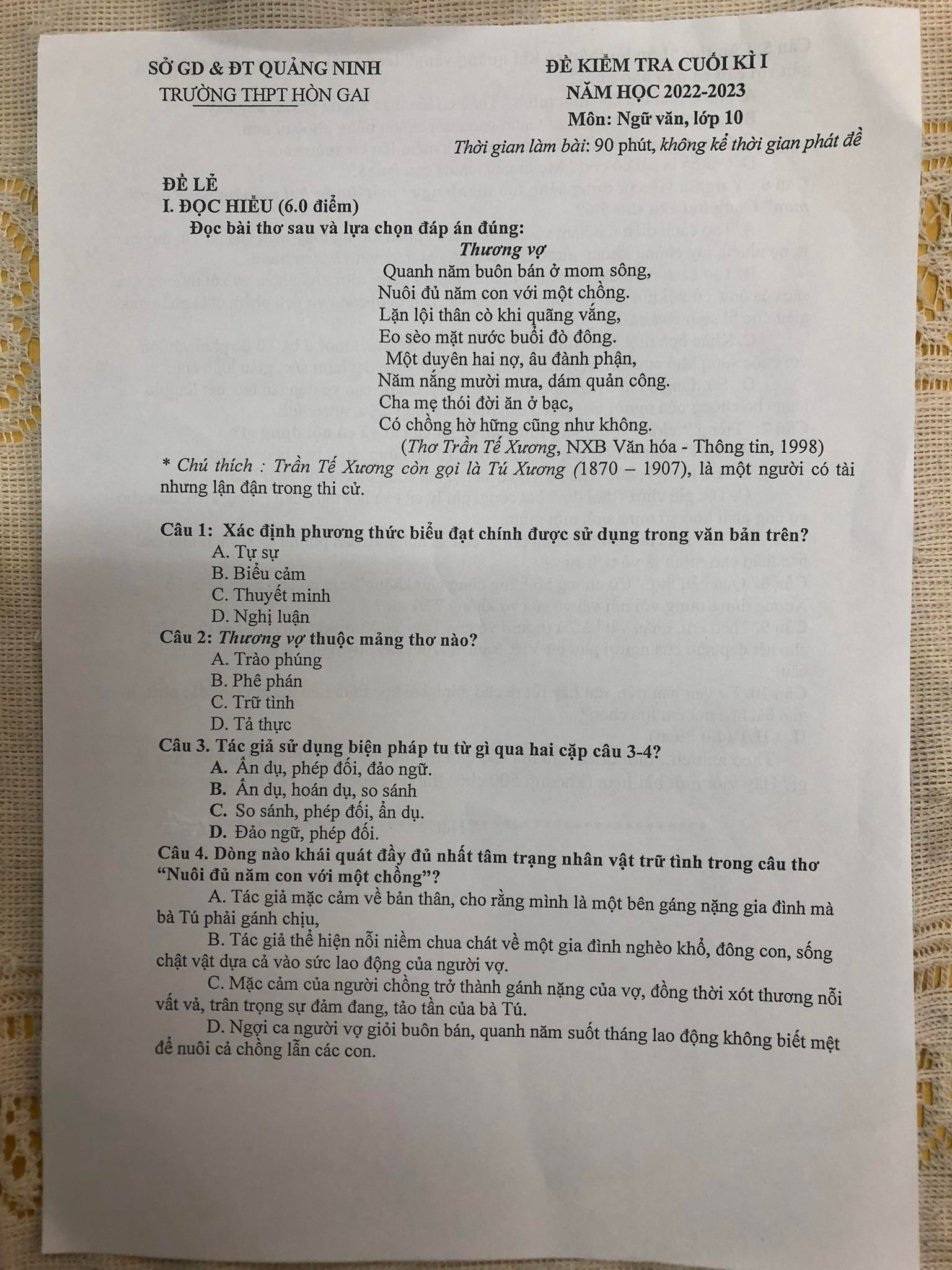 Học sinh lớp 10 và lớp 11 của Trường THPT Hòn Gai, TP Hạ Long, Quảng Ninh vừa có bài kiểm tra học kỳ 1 môn Ngữ văn. Có 2 mã đề được ký hiệu là đề chẵn và đề lẻ.