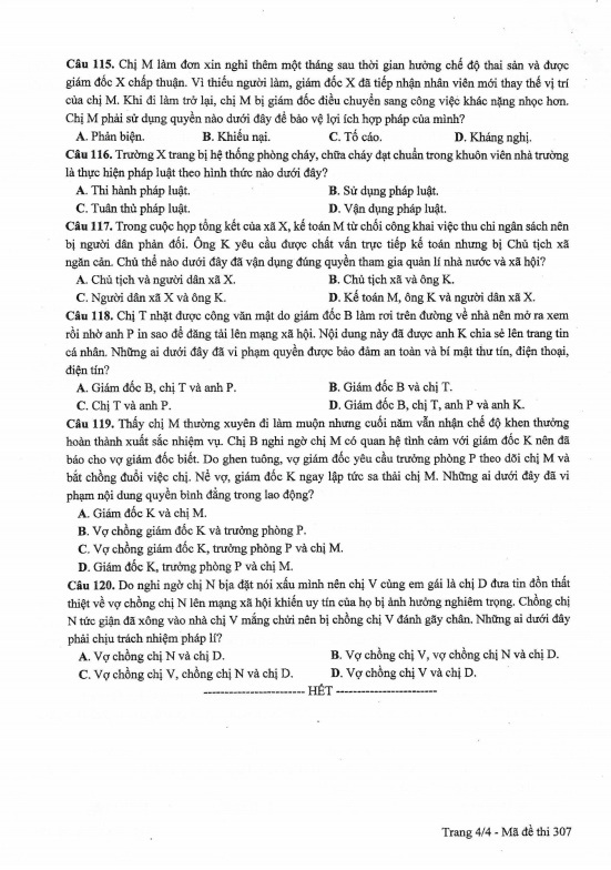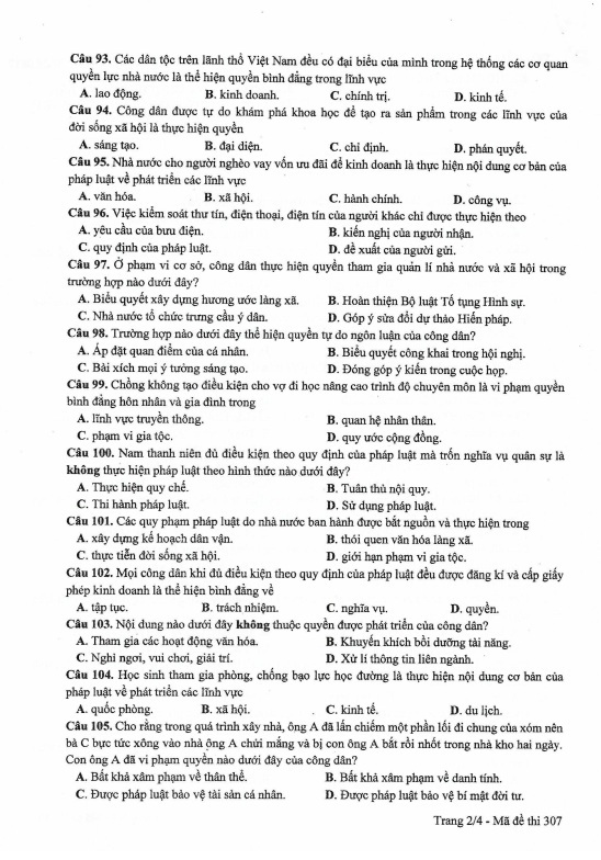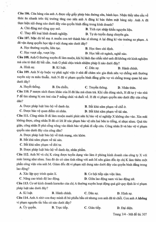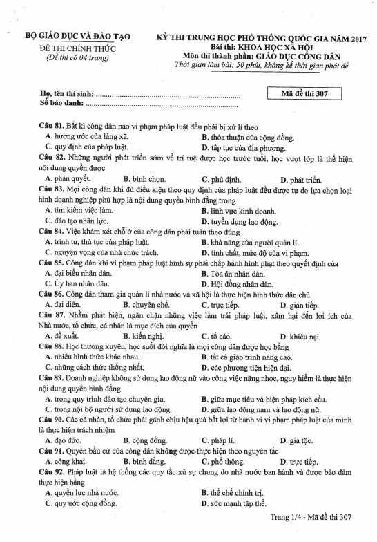 Đề thi môn Giáo dục công dân tốt nghiệp THPT quốc gia 2017.