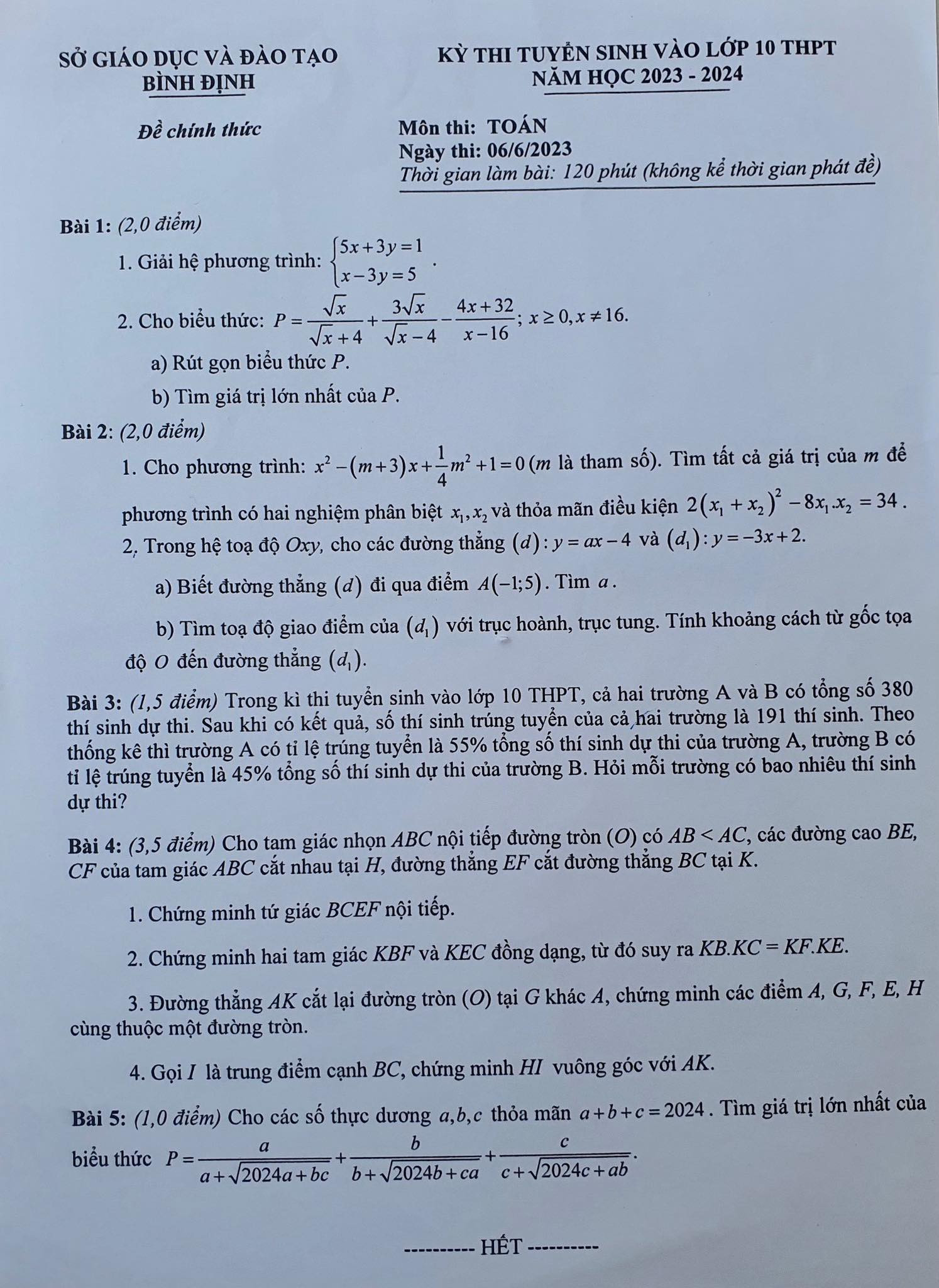 Sáng cùng ngày, các thí sinh dự thi Kỳ thi tuyển sinh lớp 10 tại Bình Định đã hoàn thành môn thi chung cuối cùng, môn Toán. Chỉ còn những thí sinh thi trường chuyên sẽ thi môn chuyên tương ứng vào chiều cùng ngày.