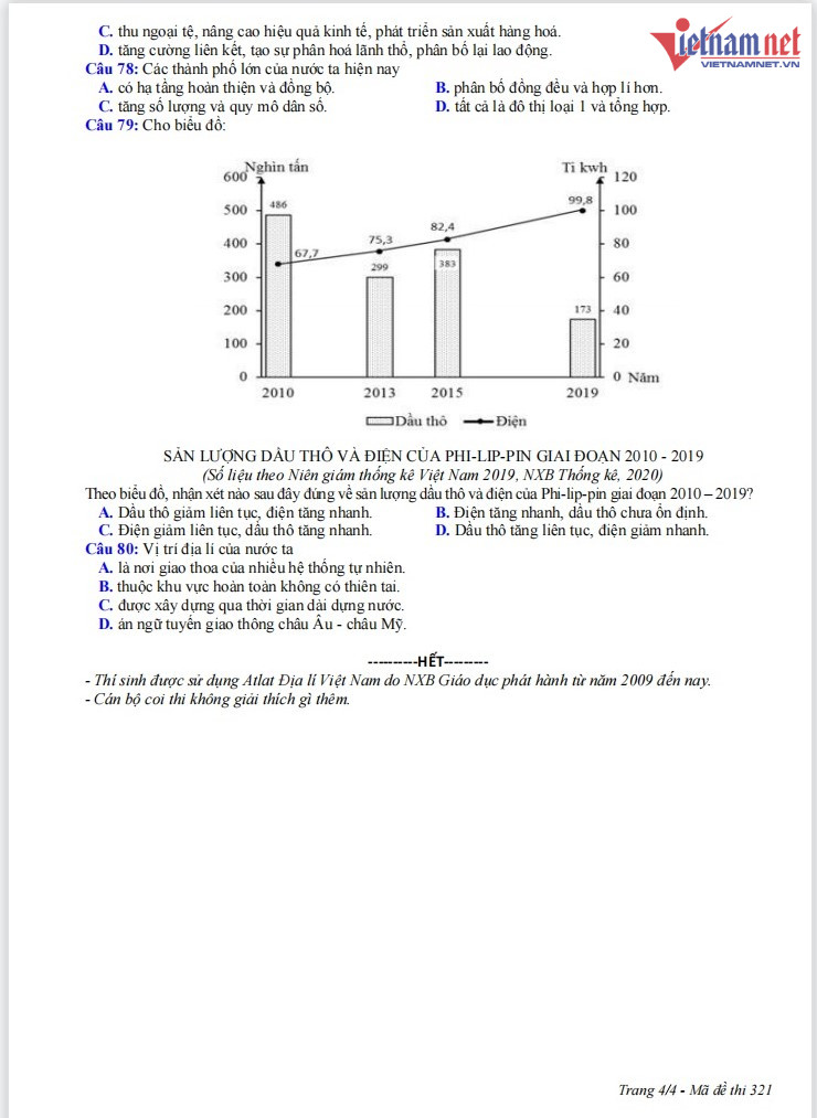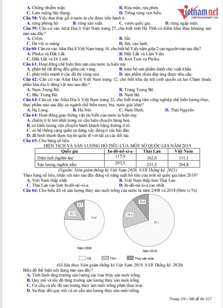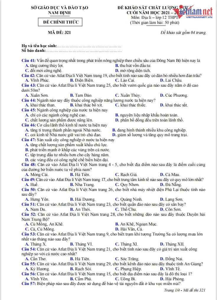 Dưới đây là đề thi thử tốt nghiệp THPT môn Địa lý được Sở GD-ĐT Nam Định xây dựng để khảo sát chất lượng học sinh năm 2022: