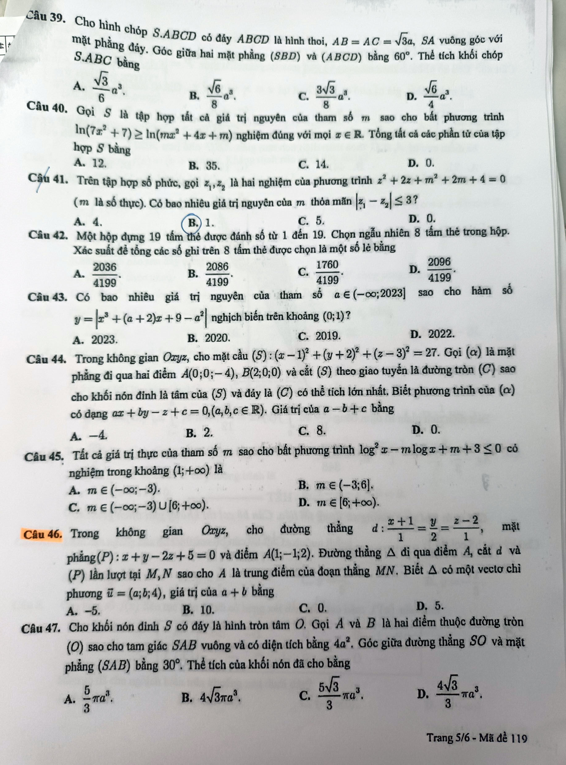 *Lưu ý: Những câu khoanh tròn trong đề thi không phải đáp án chính thức