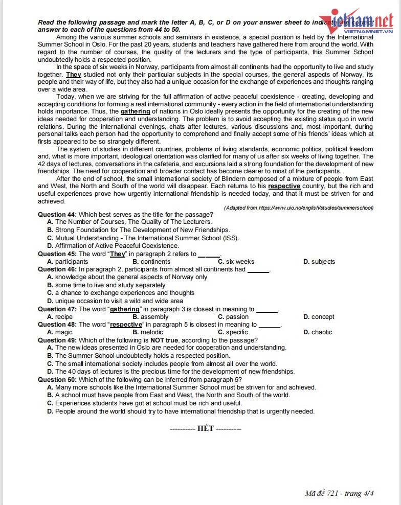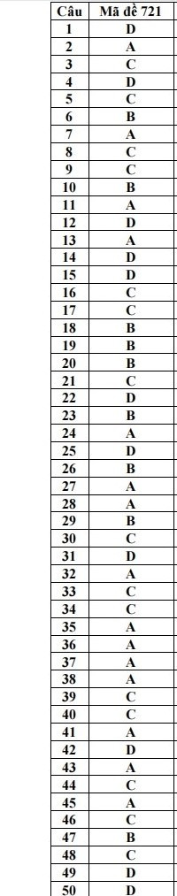 Đáp án của đề thi thử tốt nghiệp THPT môn Tiếng Anh này như sau: