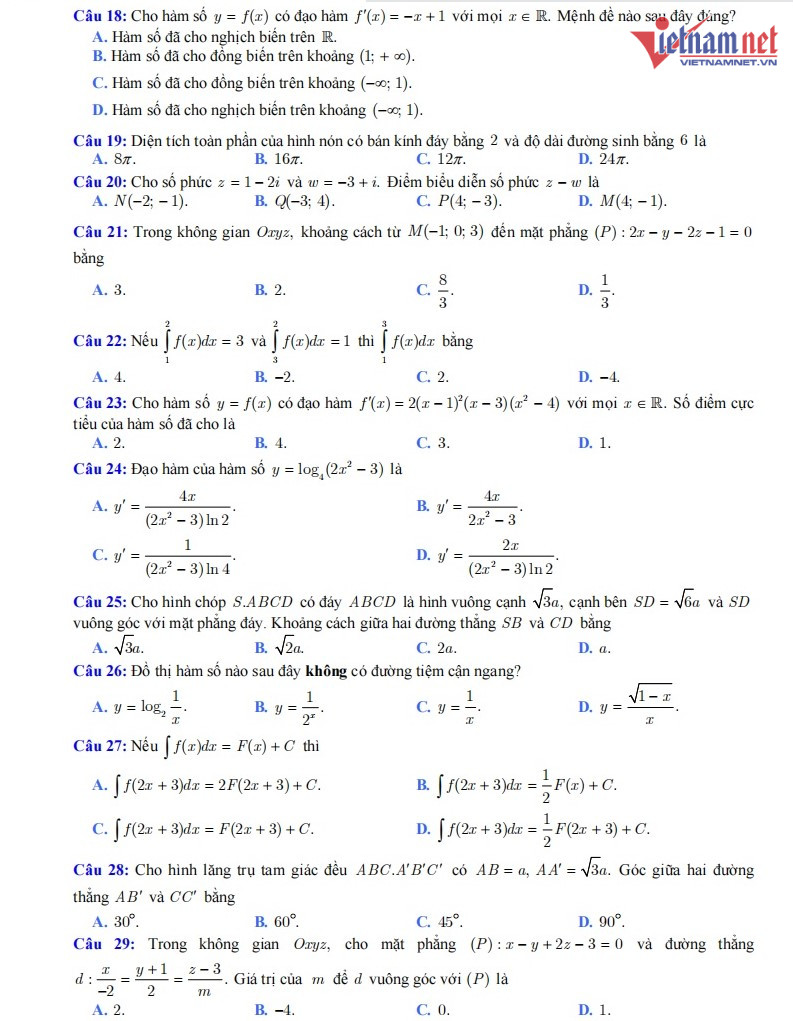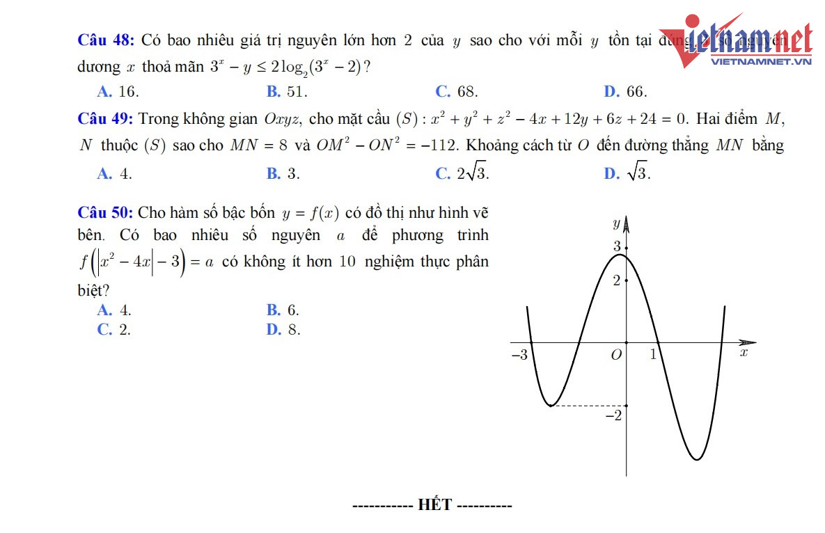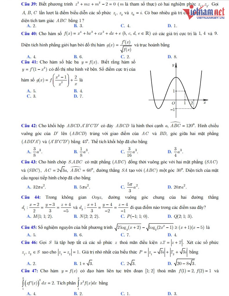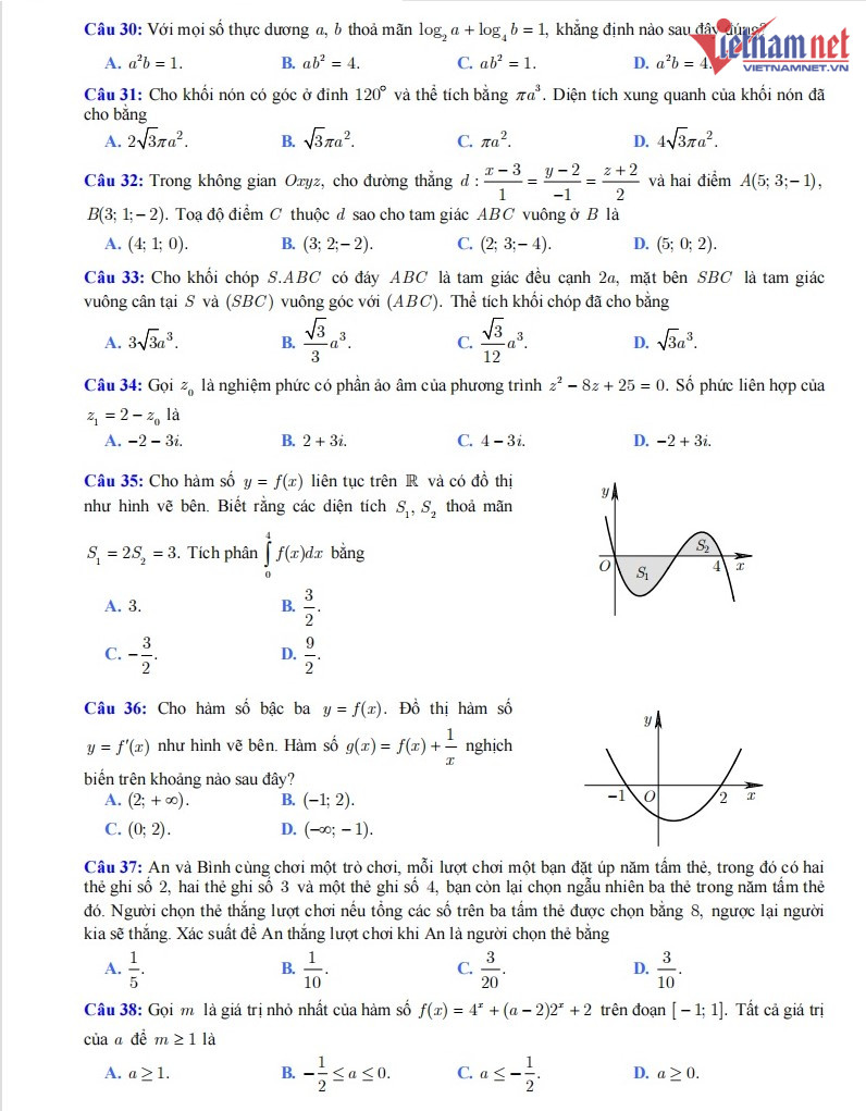 Chiều 7/7, các thí sinh dự thi tốt nghiệp THPT năm 2021 đã trải qua bài thi môn Toán. Dưới đây là đề thi môn Toán thi tốt nghiệp THPT 2021 chính thức của Bộ GD-ĐT được cập nhật nhanh nhất trên báo VietNamNet.