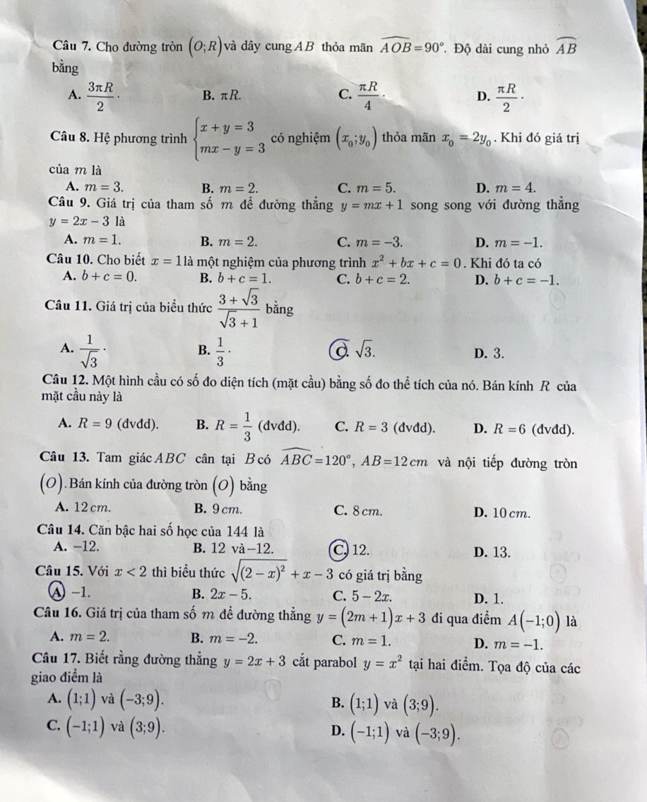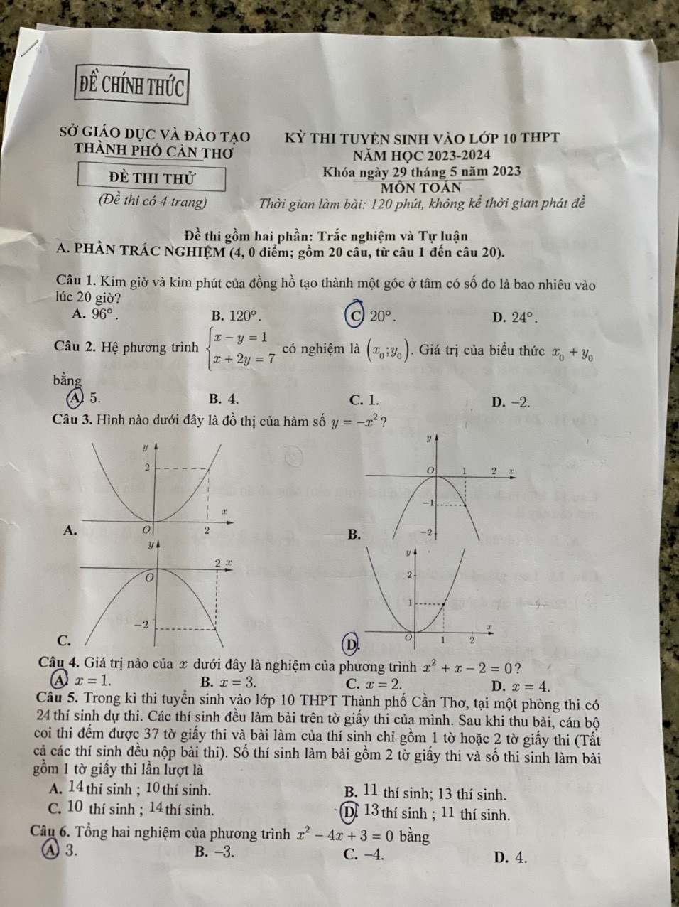 *Lưu ý: Những câu khoanh tròn trong đề thi không phải đáp án chính thức