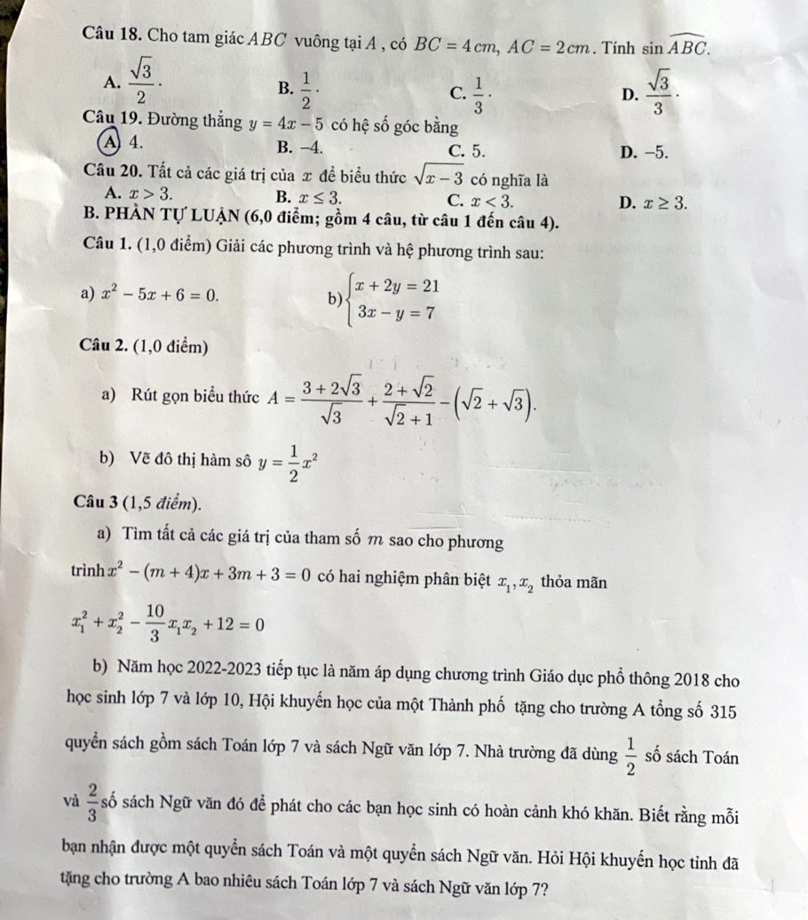 VietNamNet giới thiệu đề thi thử môn Toán vào lớp 10 THPT năm học 2023 -2024 của TP Cần Thơ.