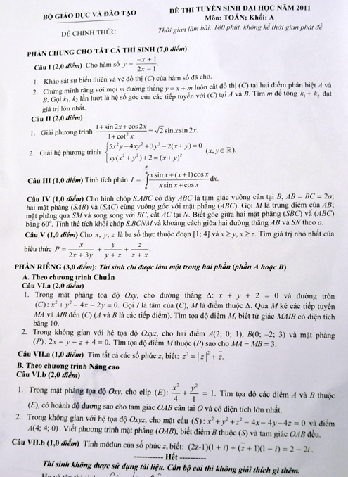 Nhiều thí sinh nhận định đề Toán ĐH không hề dễ dàng với những thí sinh có sức học làng nhàng.