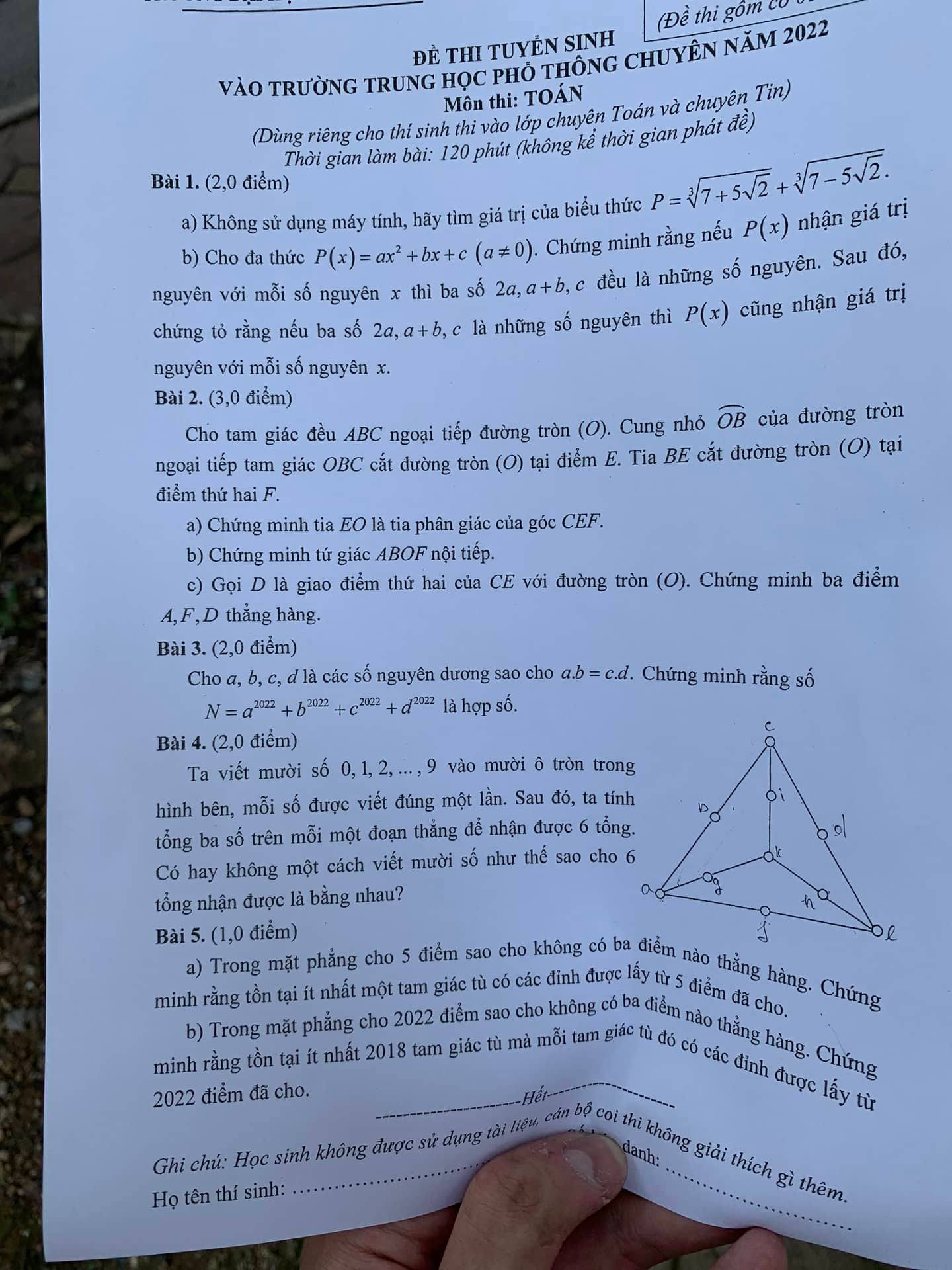 Sau đây là đề thi Toán chuyên vòng 2 vào lớp 10 chuyên Toán của Trường Chuyên Sư phạm: