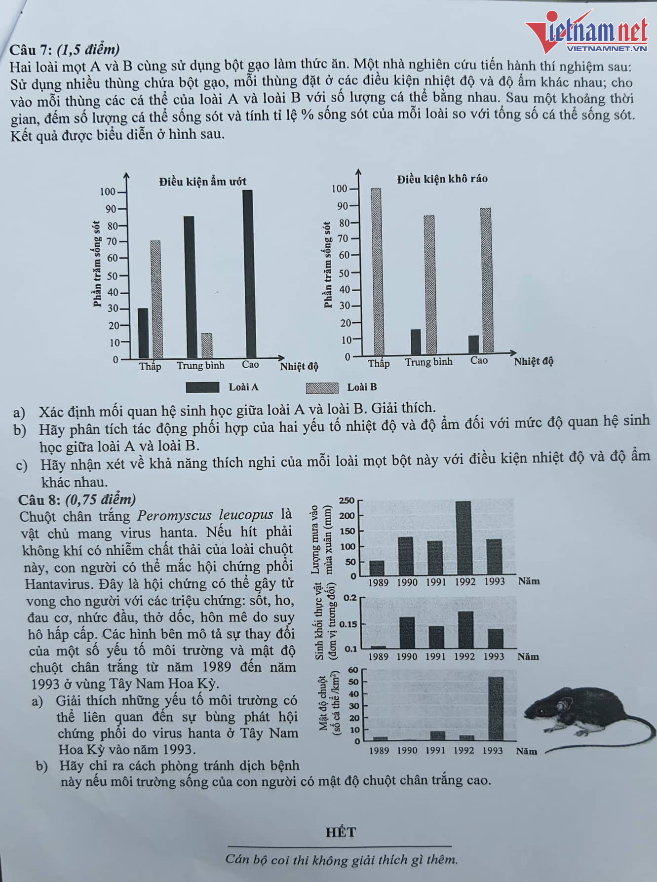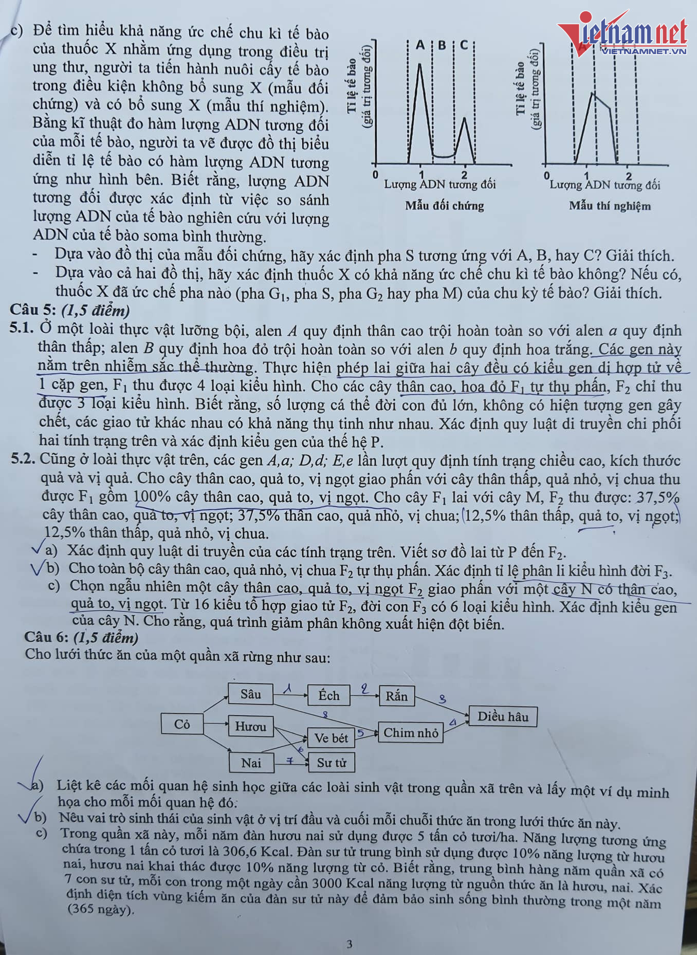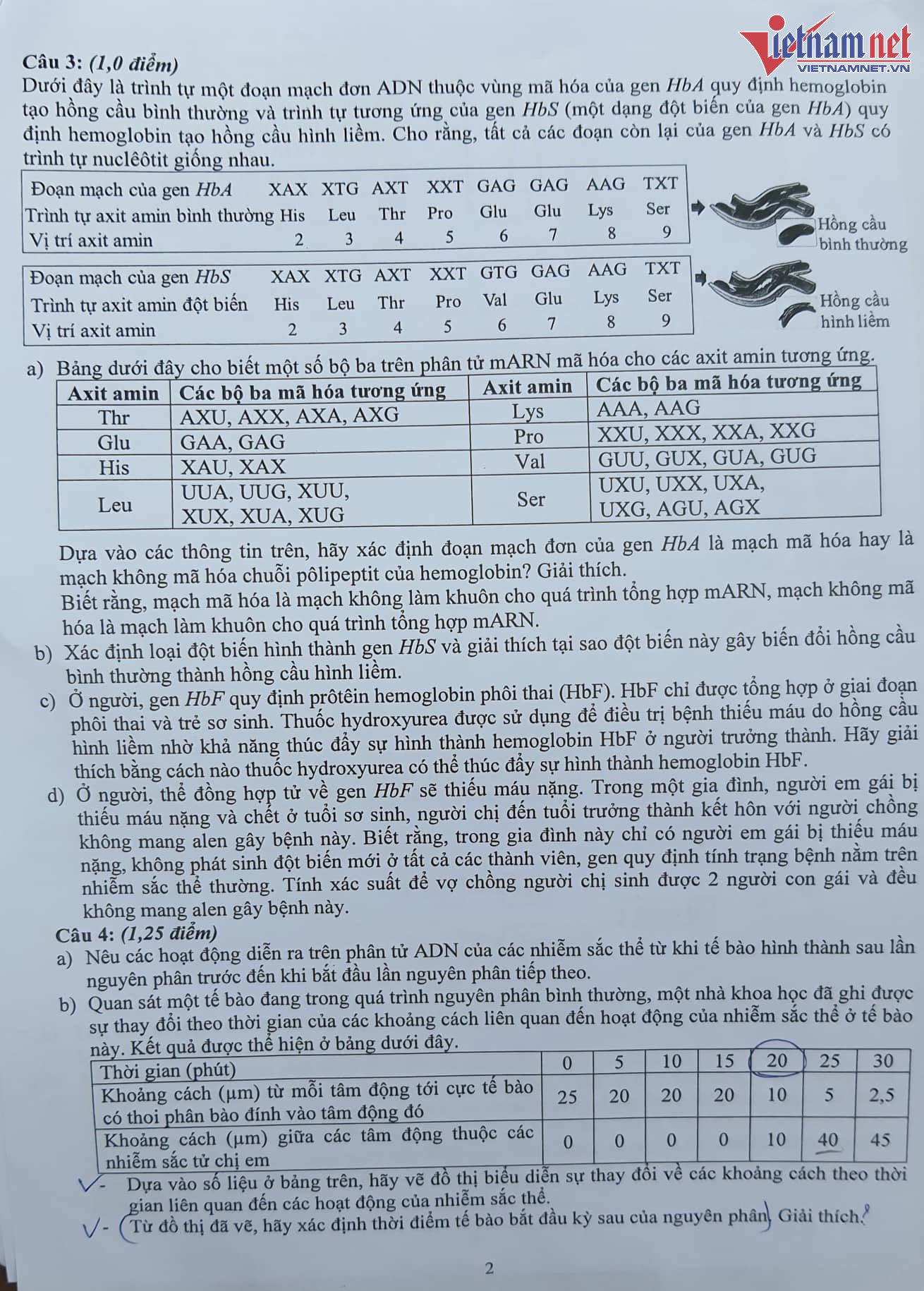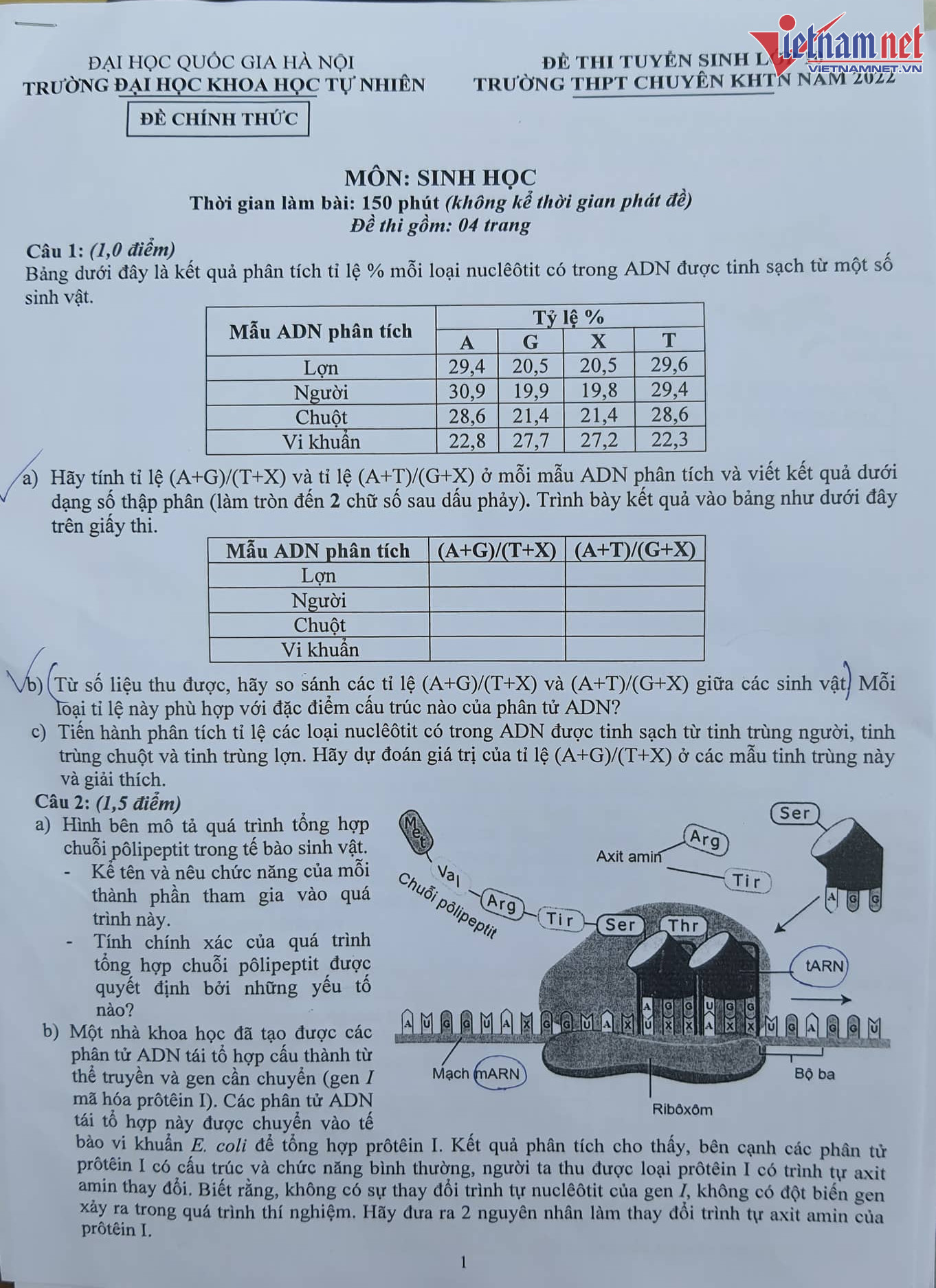 Đề thi môn Sinh dành cho khối chuyên của Trường THPT Chuyên Khoa học Tự nhiên trong thời gian 150 phút như sau: