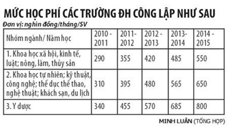 Liên quan đến quy định về mức HP, đề xuất sửa đổi của Bộ GD-ĐT dự kiến: đối với giáo dục mầm non và giáo dục phổ thông công lập: mức thu phải phù hợp với điều kiện kinh tế của từng địa bàn dân cư, khả năng đóng góp thực tế của người dân. Đồng thời, bỏ quy định hiện hành: “Từ năm học 2010 - 2011 đến năm học 2014 - 2015, mức HP và chi phí học tập khác không vượt quá 5% thu nhập bình quân hộ gia đình ở mỗi vùng”.