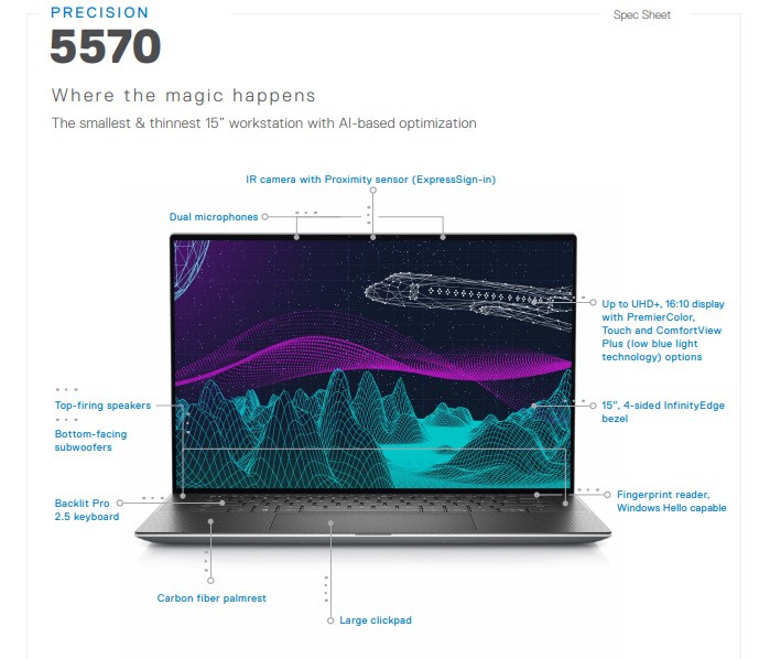 Theo đó, Precision 5570 xác lập cột mốc mới khi trở thành máy trạm 15 inch mỏng nhẹ nhất thế giới được tối ưu công nghệ trí tuệ nhân tạo (AI). Đây là bước tiến lớn của Dell khi tích hợp hàng loạt công nghệ cao cấp trong một chiếc máy đồ họa với độ dày chỉ 13.56 inch, tương đương 344.40 mm.