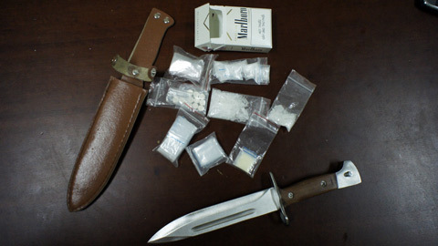 Số lượng lớn ma túy cùng lưỡi lê aka của đối tượng Tiến
