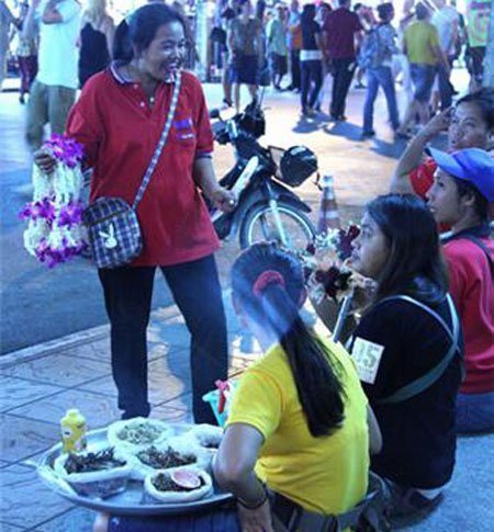 Những người bán hàng rong phục vụ dân chơi về đêm cũng nhộn nhịp bày hàng.