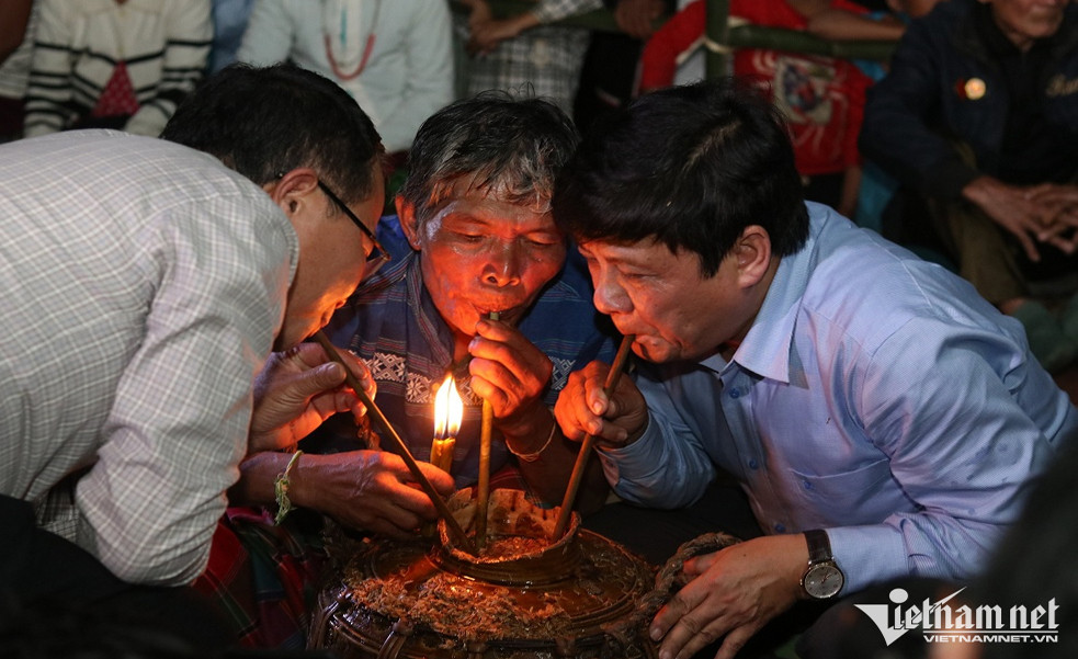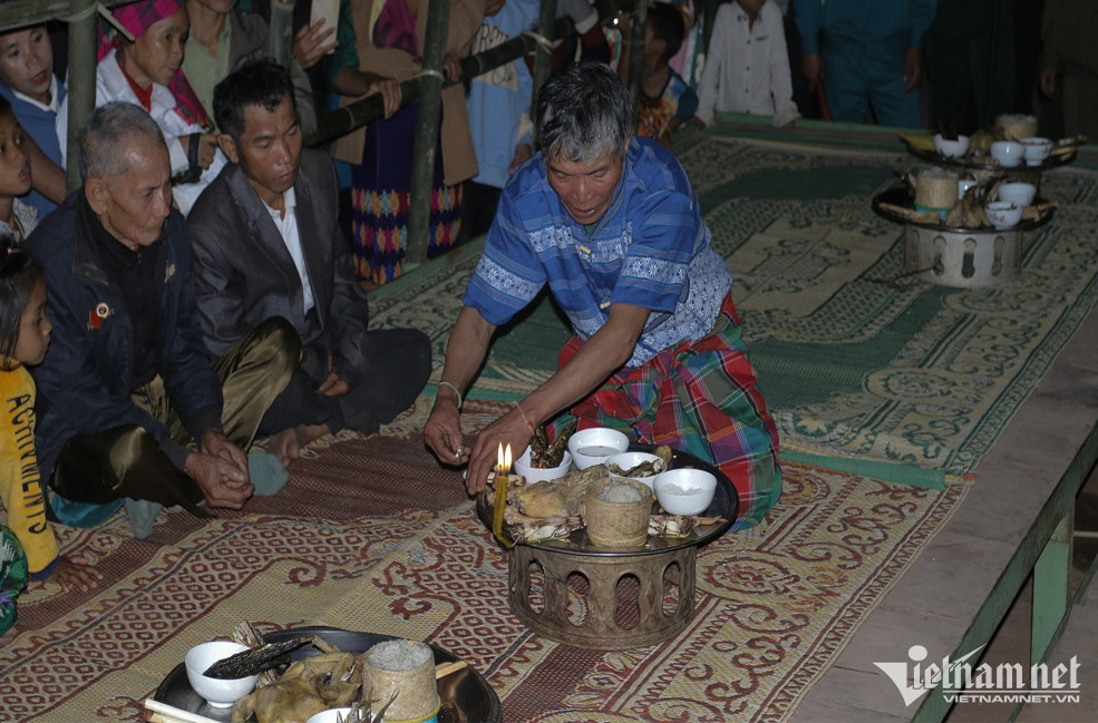 Tất cả thể hiện sự kính trọng của dân làng đối với Giàng, với các vị thần luôn che chở cho cuộc sống của bà con. Khi trăng lên ngang đầu là lúc vào giờ khai lễ. Già làng Đinh Xon đọc lời khấn cầu trời đất phù hộ cho dân bản sống yên lành, làm ăn no đủ, mùa màng bội thu.