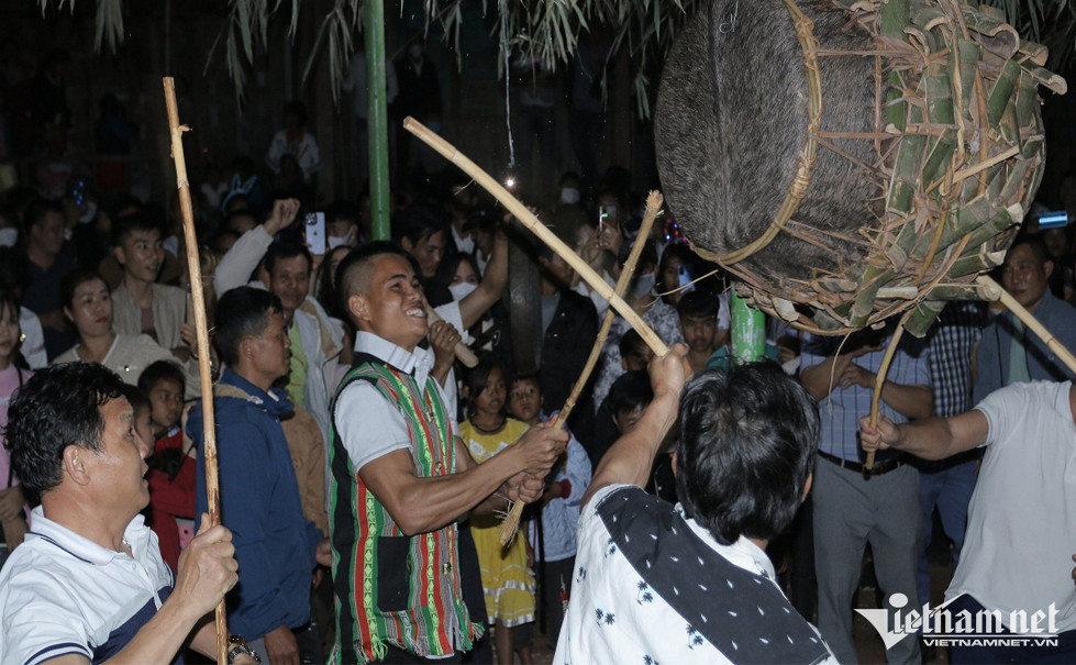 Vừa đánh trống, đám thanh niên vừa la vang rừng: “Roa lữ Giàng ơi” nghĩa là “sướng quá trời ơi”.