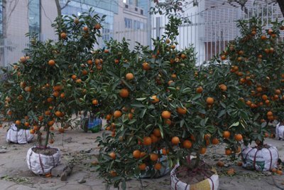 Nhiều cây quất trước kêu giá hàng trăm nghìn, nay đồng loạt bị hạ xuống còn 50 nghìn nhưng cũng không mấy ai để ý. Ảnh: Việt Anh