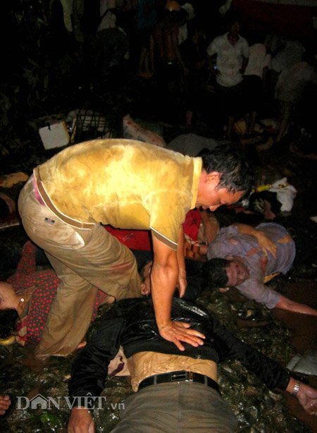 | Nỗ lực cấp cứu cho một nạn nhân còn sống - Ảnh: Dân Việt |
