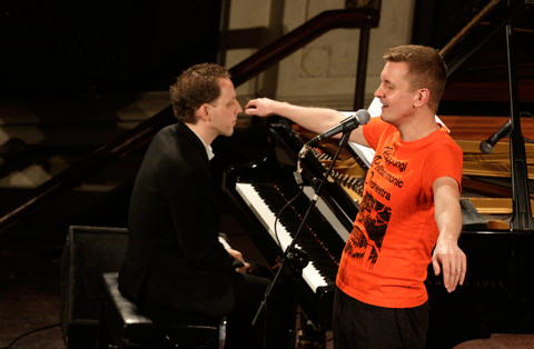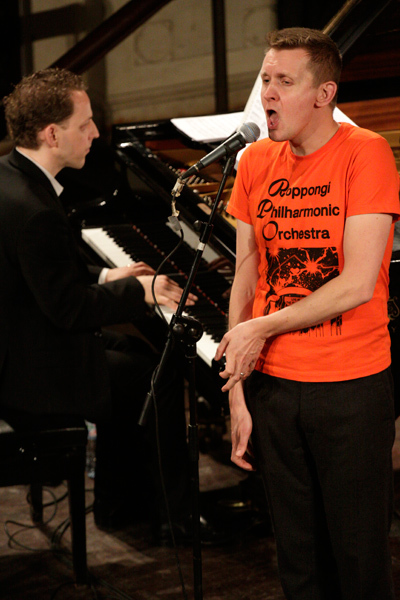 Michael Schiefel phiêu trên sân khấu lúc biểu diễn ca khúc "On being a woman".