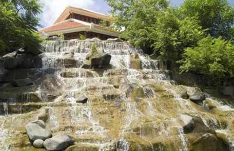 Sườn núi đá được tận dụng làm thác nước, cây xanh cũng nhờ đó được nguồn