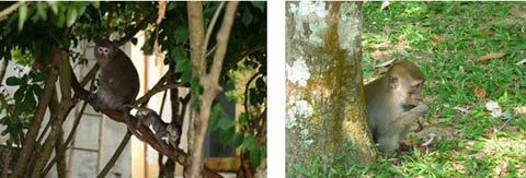 | Nghỉ tại Vinpearl, du khách may mắn có thể bắt gặp những chú khỉ tinh nghịch trêu đùa trên cây ngay trong khu vực khách sạn. |