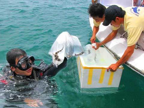 | Thả cá Mập beo ấp nở thành công tại Thủy cung Vinpearl về với biển. |