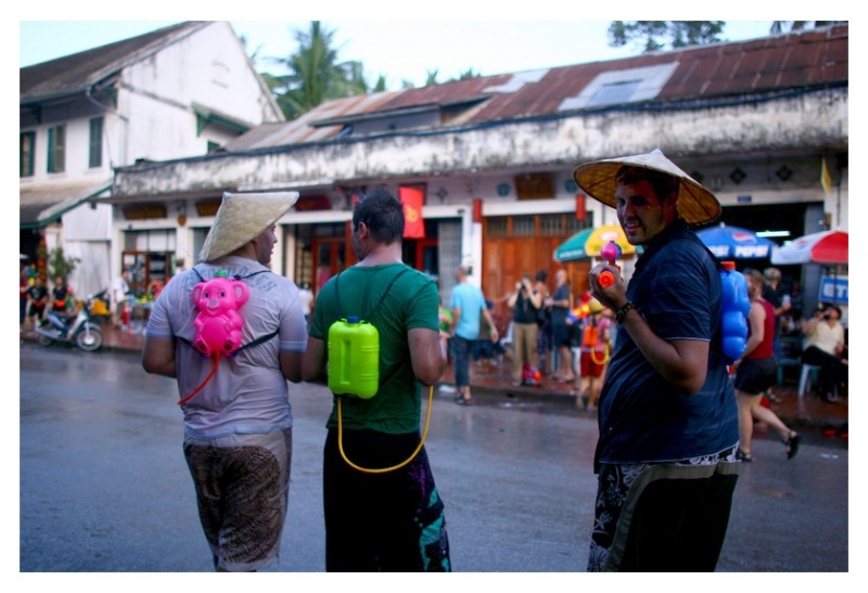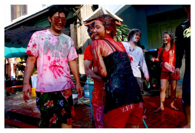 Sau khi kết thức buổi lễ, thì hội té nước chính thức bắt đầu. Từ trẻ em đến người lớn tụ tập thành từng nhóm để té nước người qua đường (Ảnh: nkh287-phuot.com) |