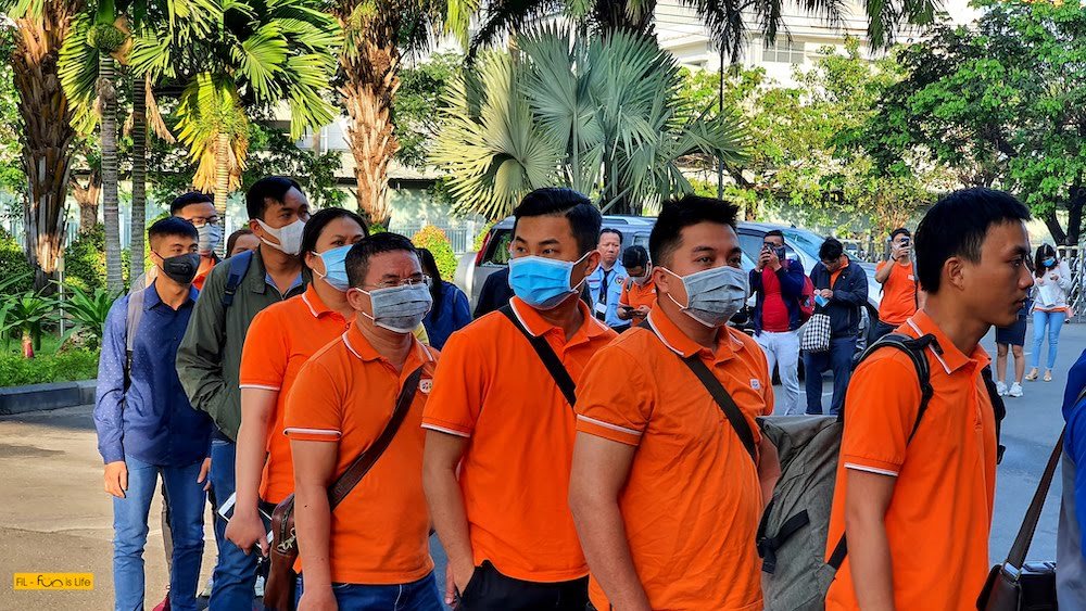 Bộ Y tế khuyến cáo người khoẻ mạnh chỉ nên đeo khẩu trang khi đi đến nơi đông người. Ảnh: nhân viên FPT đeo khẩu trang đi vào văn phòng làm việc. Ảnh: Phan Nhật |