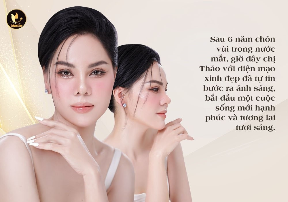 6 năm sống trong mặc cảm, giờ đây với ngoại hình mới giúp Thảo loại bỏ tự ti, hạnh phúc, gương mặt rạng ngời hơn. “Nụ cười của chị Thảo chính là niềm vui của tôi và đội ngũ Saigon Star”, BS. Hoạt chia sẻ.