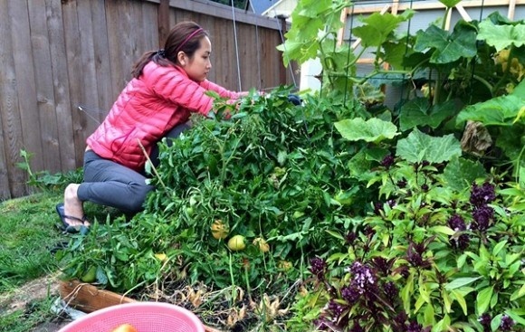 Ngoài khu vườn nhỏ là nơi yêu thích của Yến Phương khi cô tự tay trồng những loại rau củ thường dùng ở quê nhà như bí đỏ, cà chua, dưa chuột...