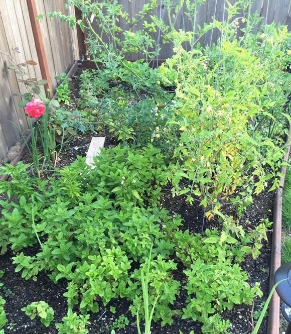 Vườn rau gia vị được trồng xen lẫn với hoa.