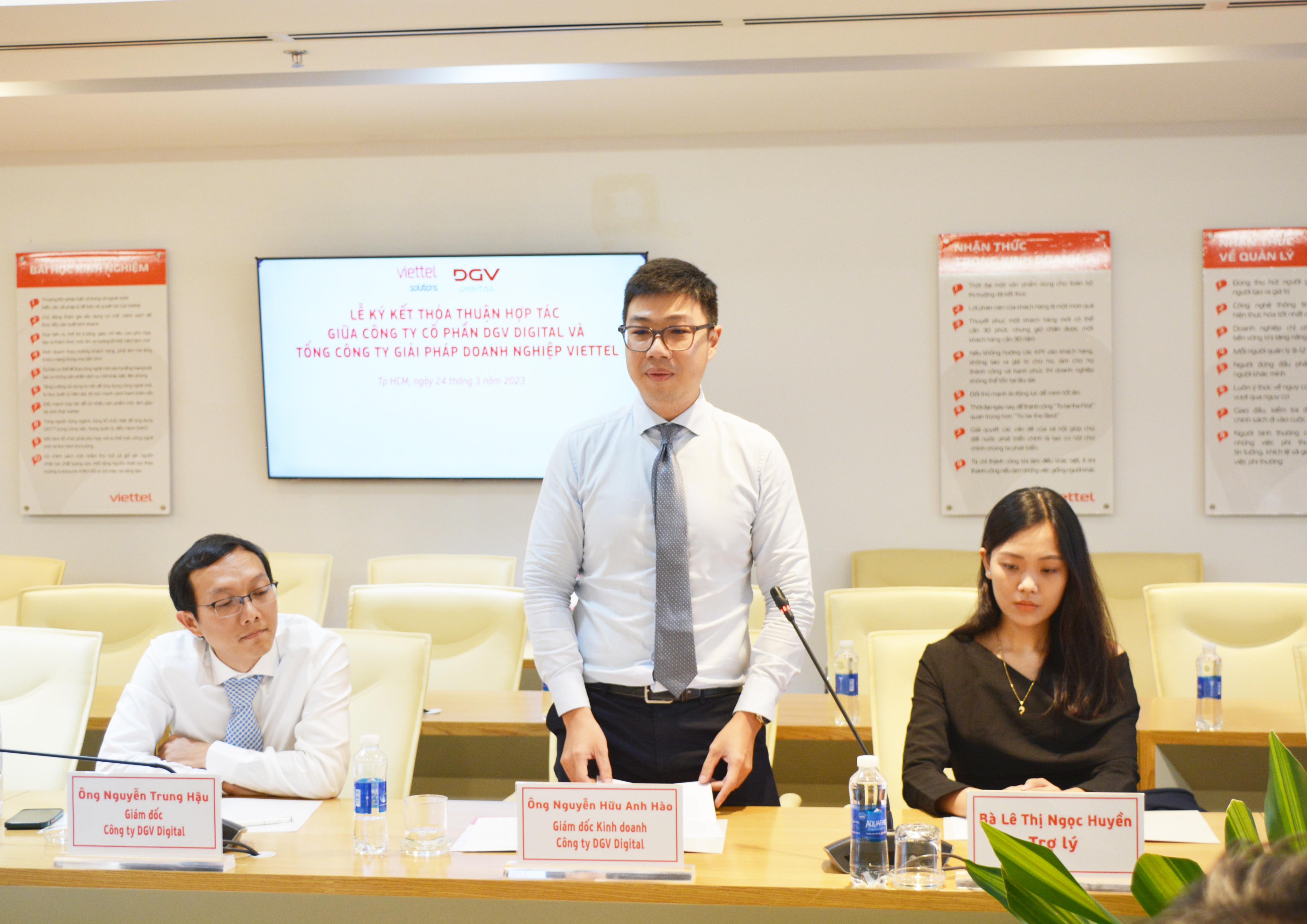 Phát biểu tại lễ ký kết thỏa thuận, ông Nguyễn Hữu Anh Hào - Giám đốc Kinh doanh của DGV Digital cho biết: “Chúng tôi rất hân hạnh trở thành đối tác chiến lược của Viettel Solutions và sẽ nỗ lực vì những mục tiêu chung đã đề ra. Buổi ký kết không chỉ đánh dấu một bước tiến mới trong lĩnh vực chăm sóc khách hàng thân thiết, mà còn hướng đến mối quan hệ bền vững với cả hai phía”.