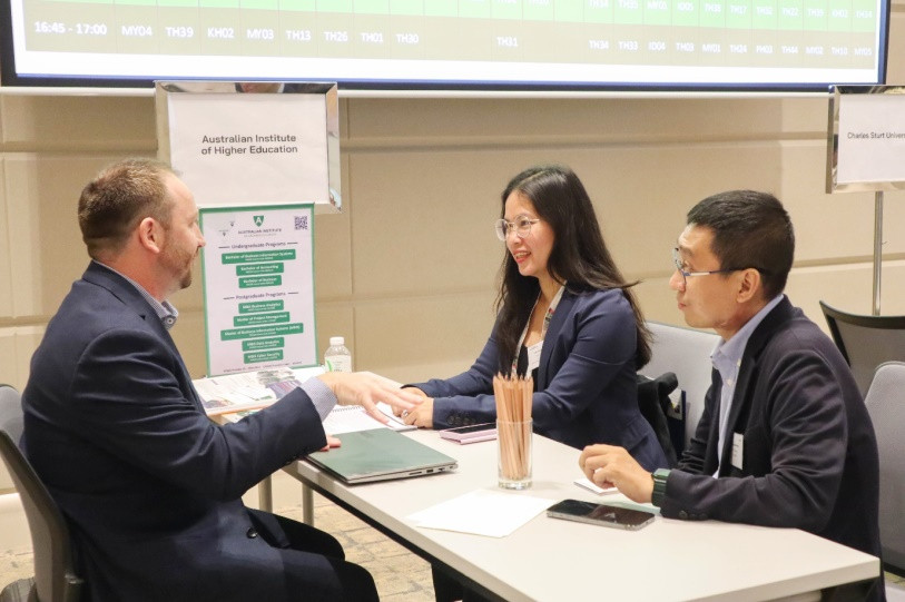 Trong chuỗi hoạt động diễn ra trước sự kiện triển lãm, chiều ngày 13/03/2023, các đại diện trường Đại học Văn Lang tham gia hội thảo Giáo dục xuyên quốc gia ASEAN - Úc (ASEAN - Australia TNE Workshop), được tổ chức bởi Ủy ban Thương mại và Đầu tư Úc (Austrade). ThS. Bùi Phạm Lan Phương - Phó Hiệu trưởng Trường Đại học Văn Lang đến sự kiện với vai trò tham luận viên, cùng bàn luận các vấn đề nóng liên quan đến giáo dục xuyên quốc gia giữa Việt Nam nói riêng và các nước châu Á - Thái Bình Dương nói chung với Úc.